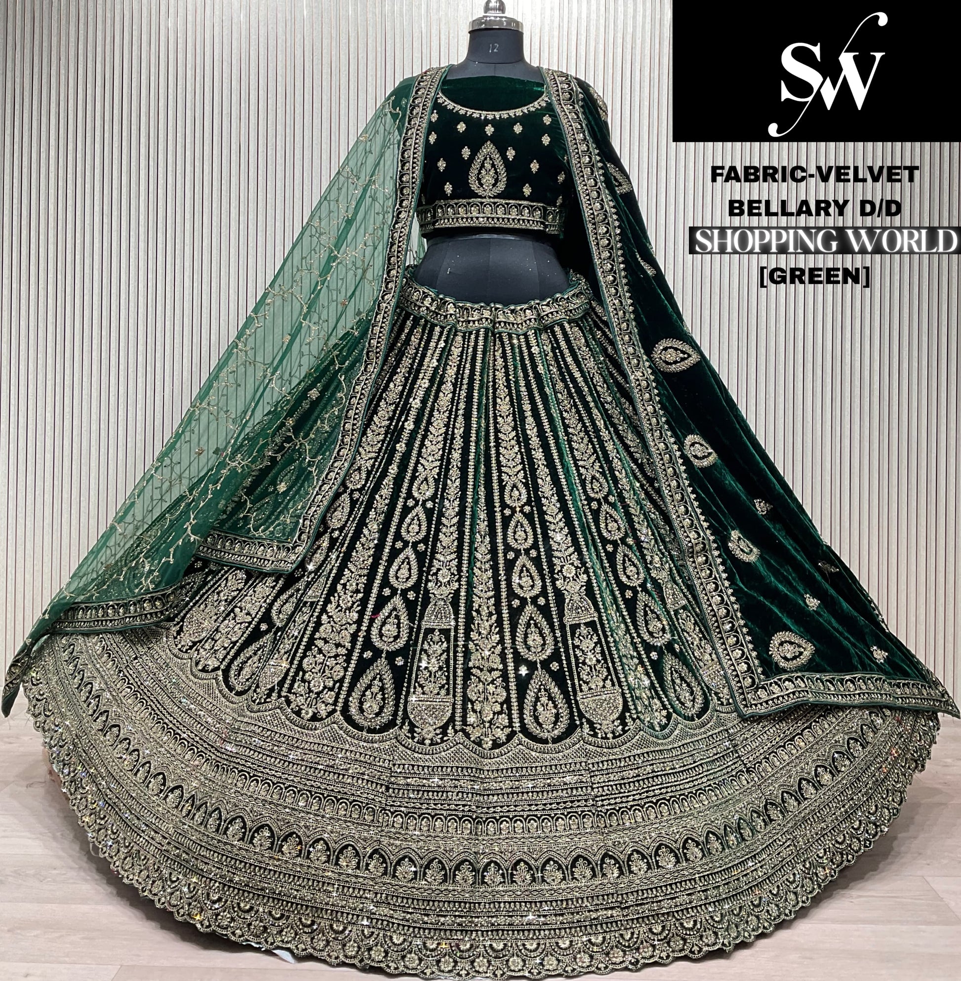 Green Velvet Bridal Lehenga