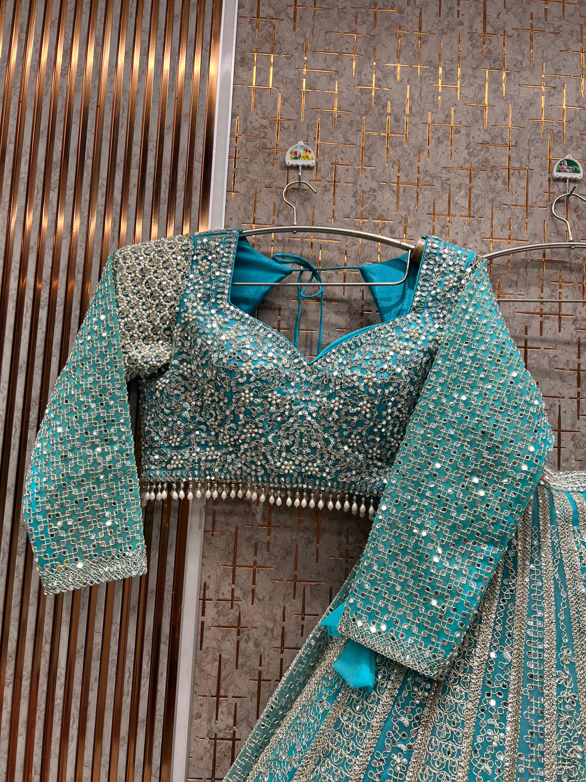 Attractive pista green peacock crop top Lehenga Happy Customer