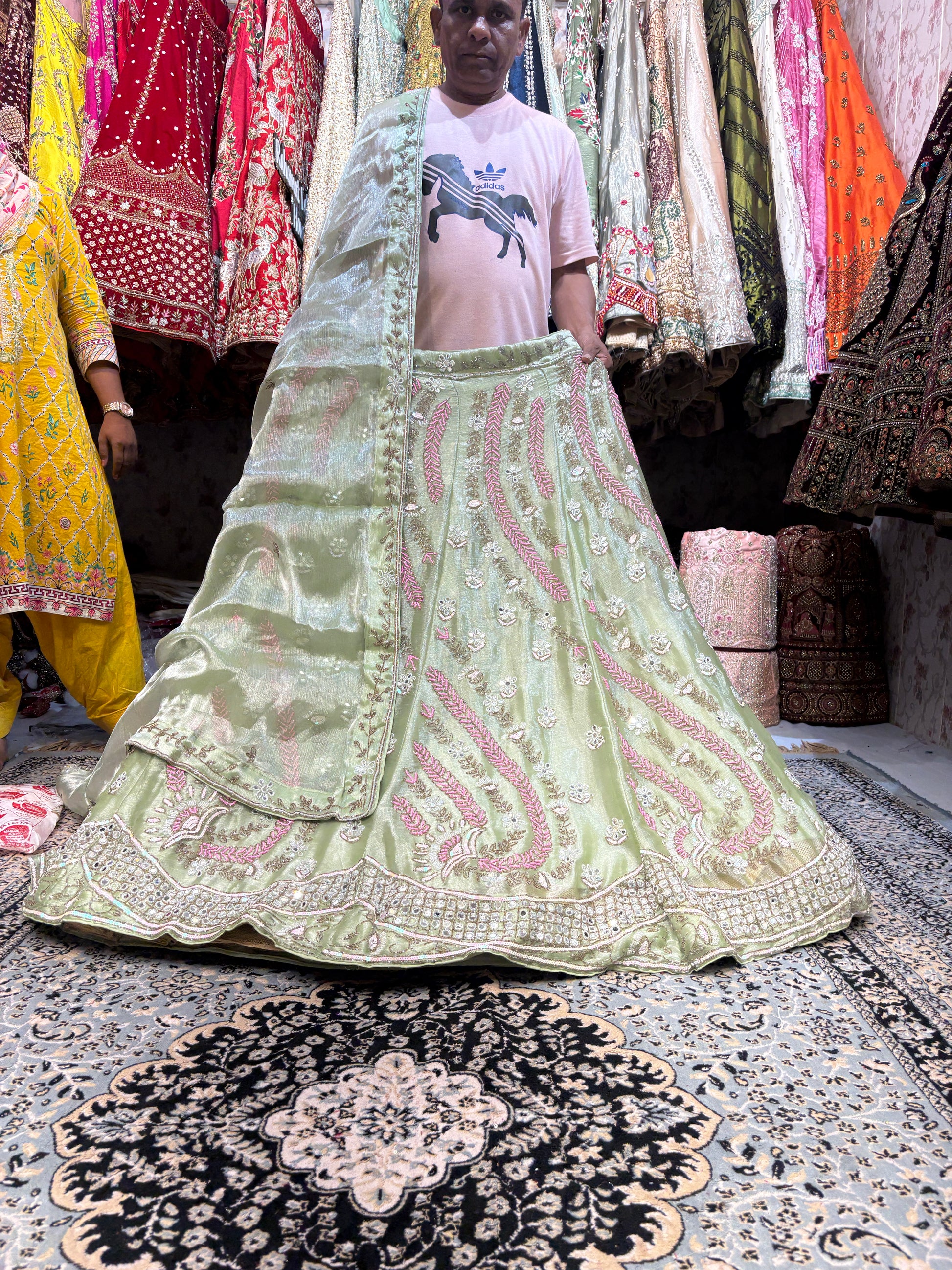 Attractive pista green peacock crop top Lehenga Happy Customer