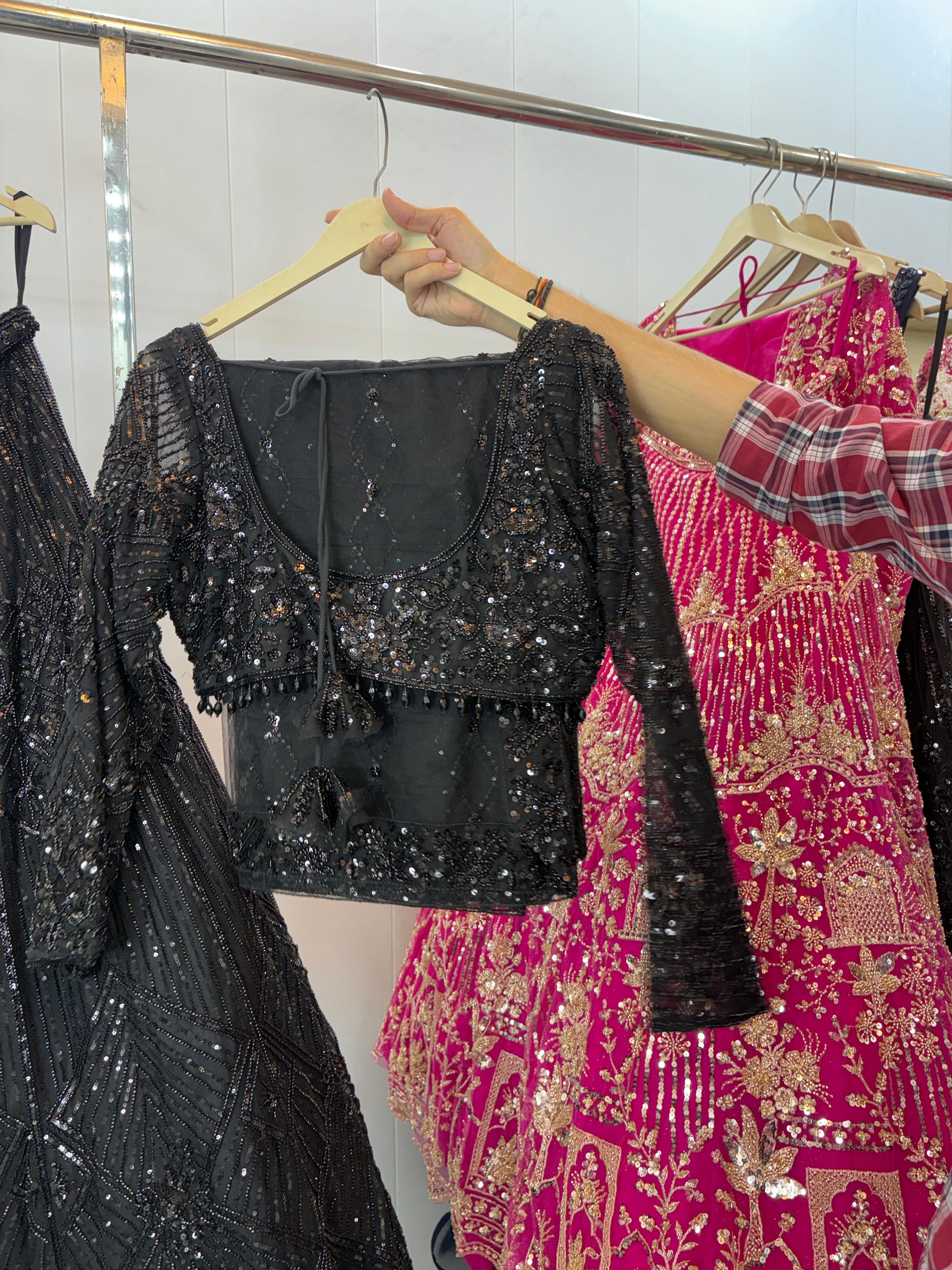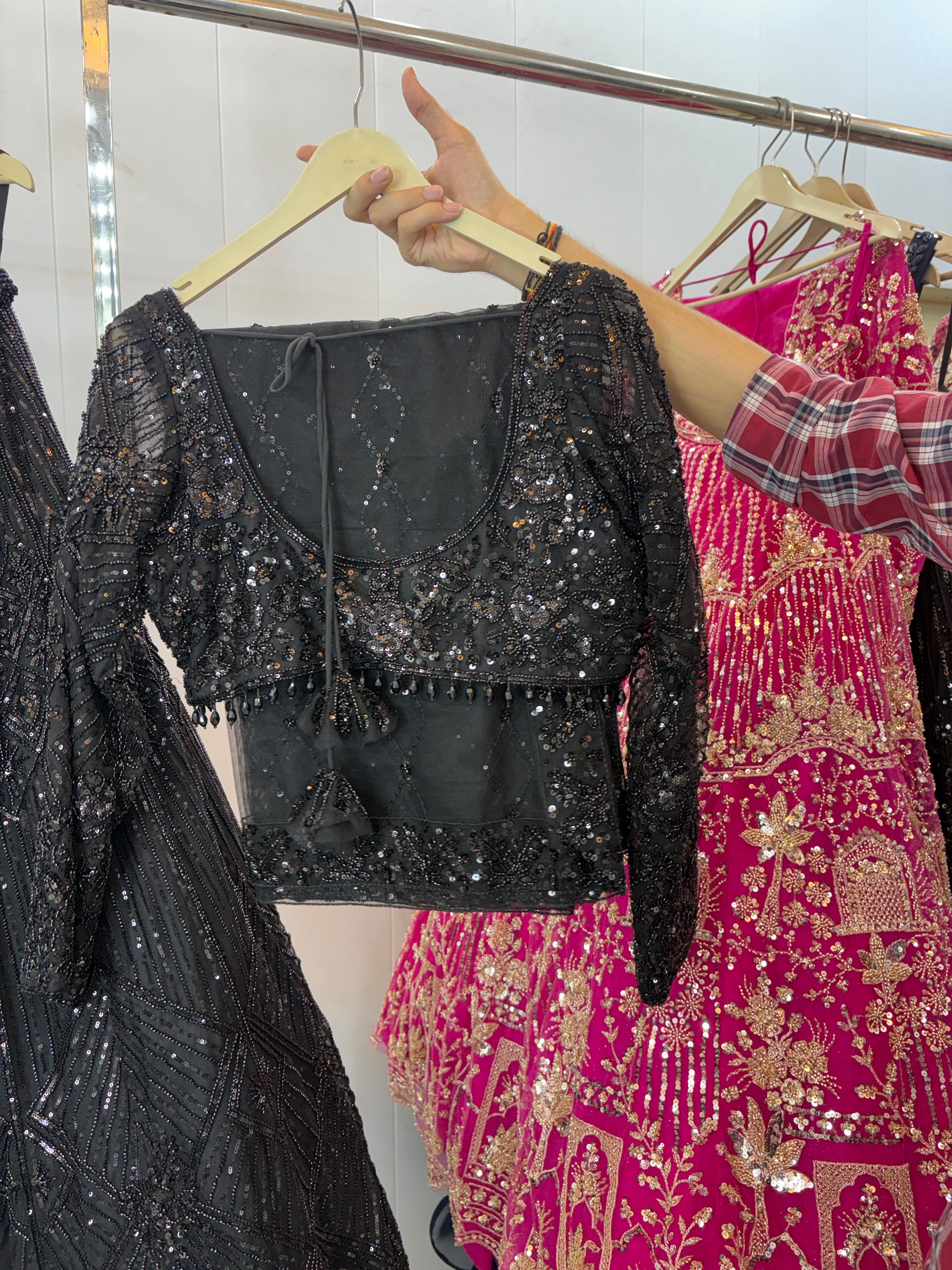 Designer Black Sequins Crop top Lehenga