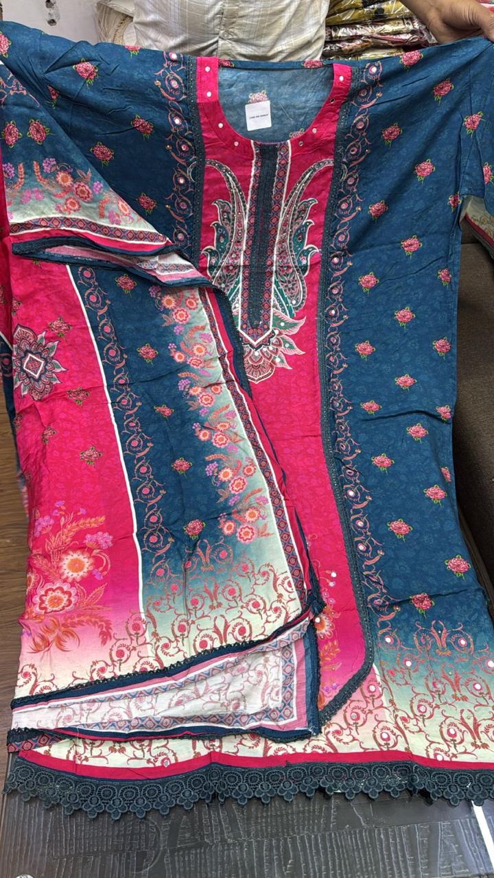 अद्भुत गुलाबी नीला अनसिला सूट (फ्री साइज़)