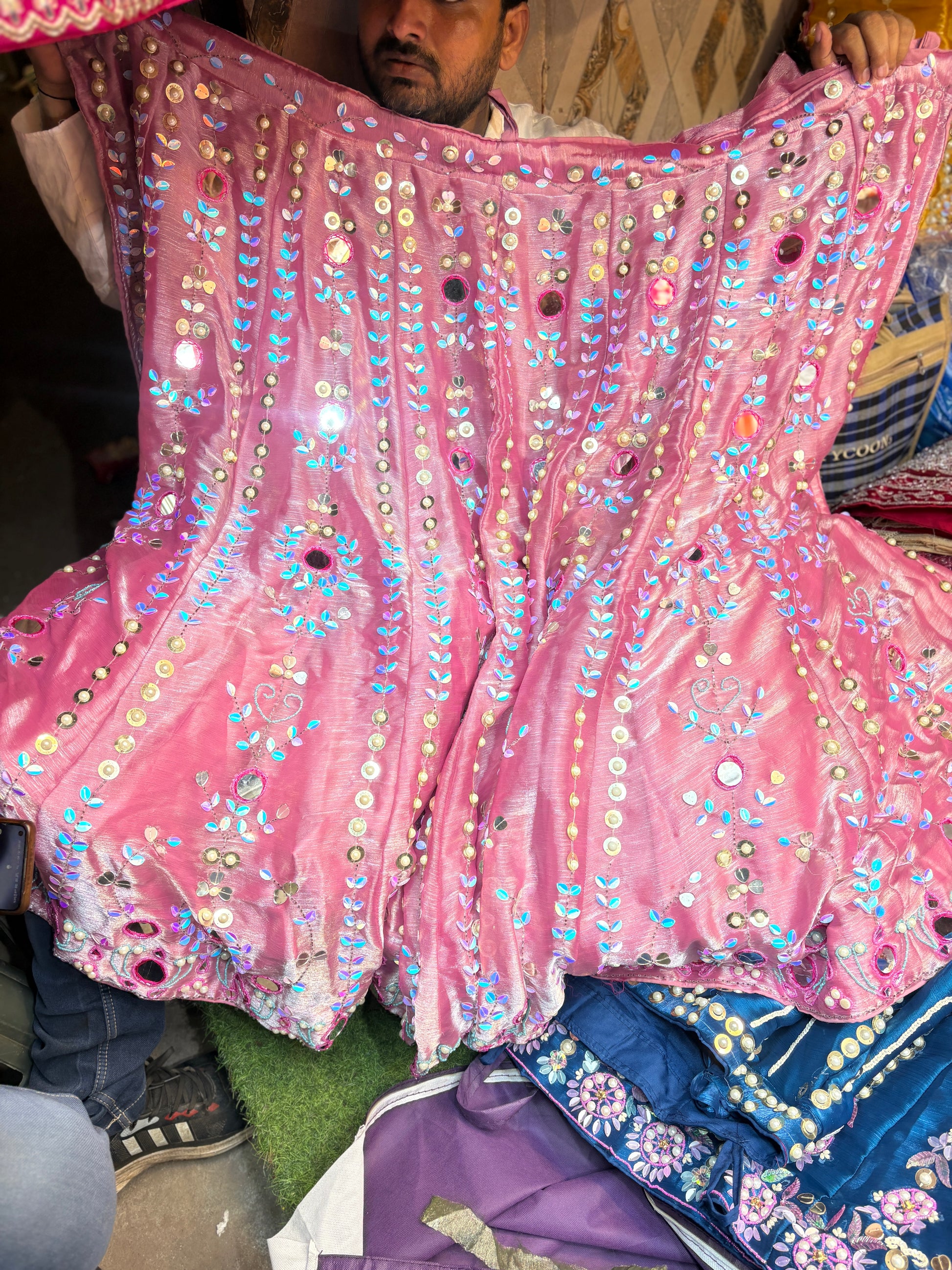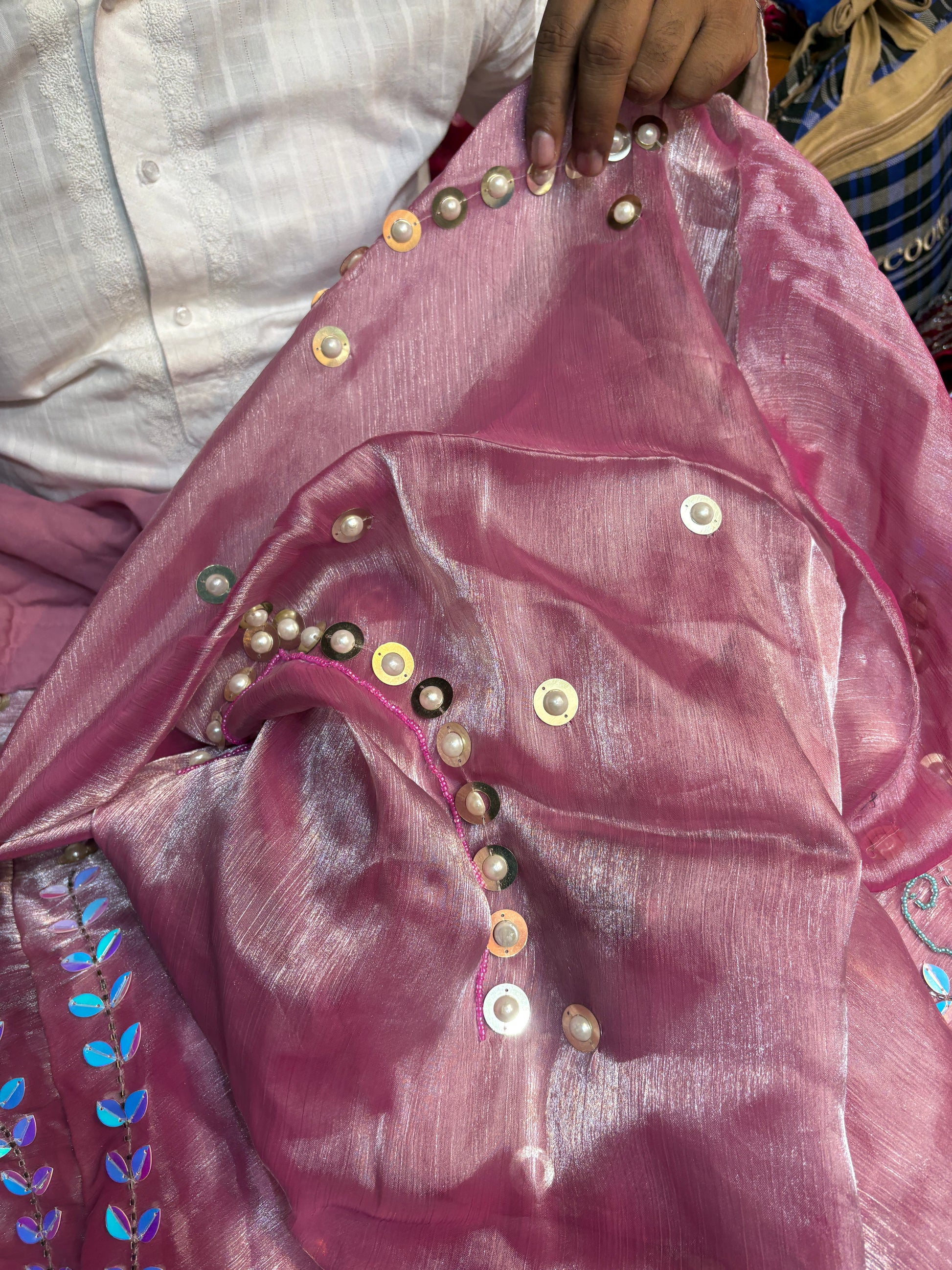 शानदार गुलाबी फूल वाला क्रॉप टॉप लेहंगा, खुश ग्राहक।