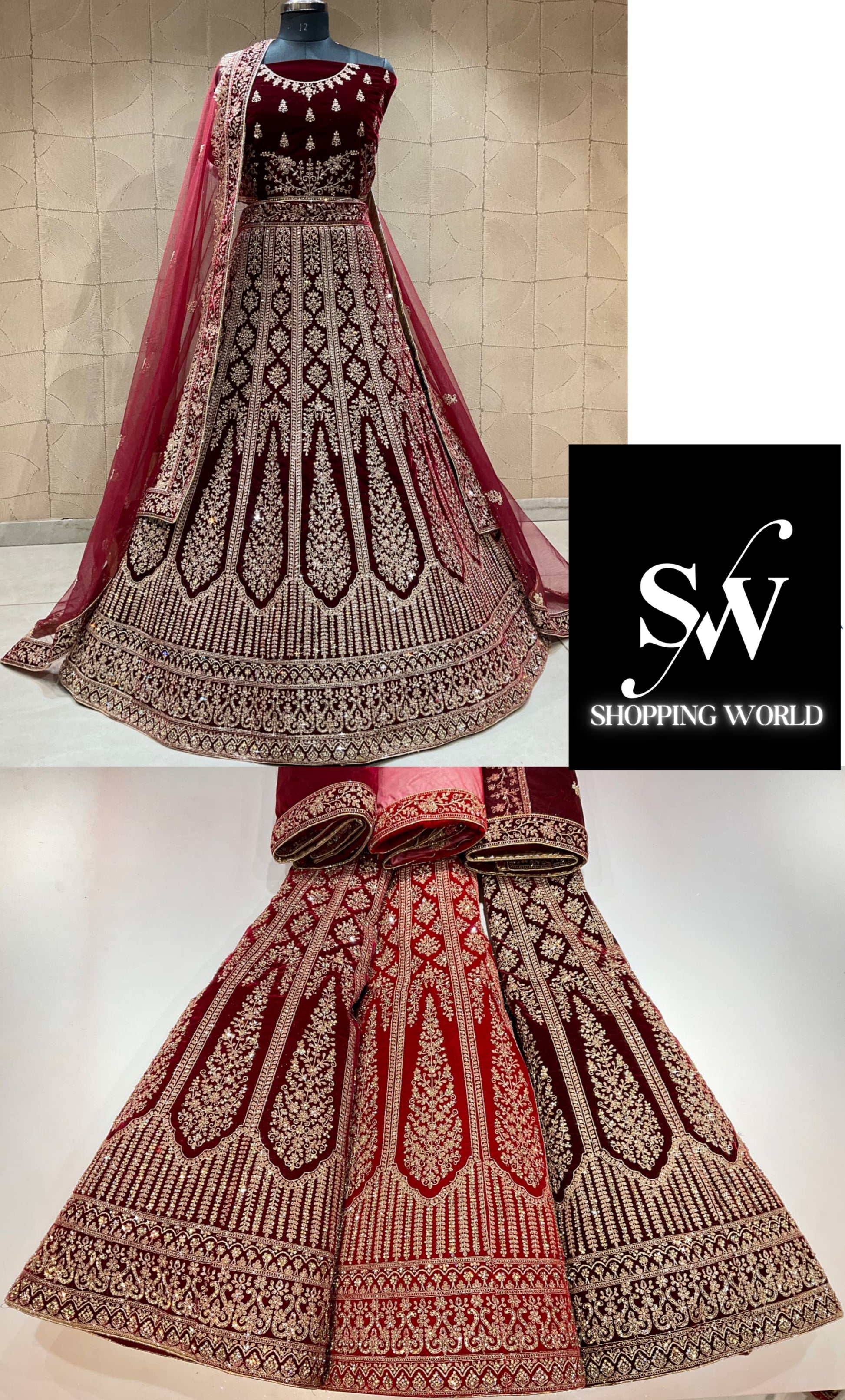 शानदार मैरून गोल्डन ब्राइडल लहंगा (खुश ग्राहक)
