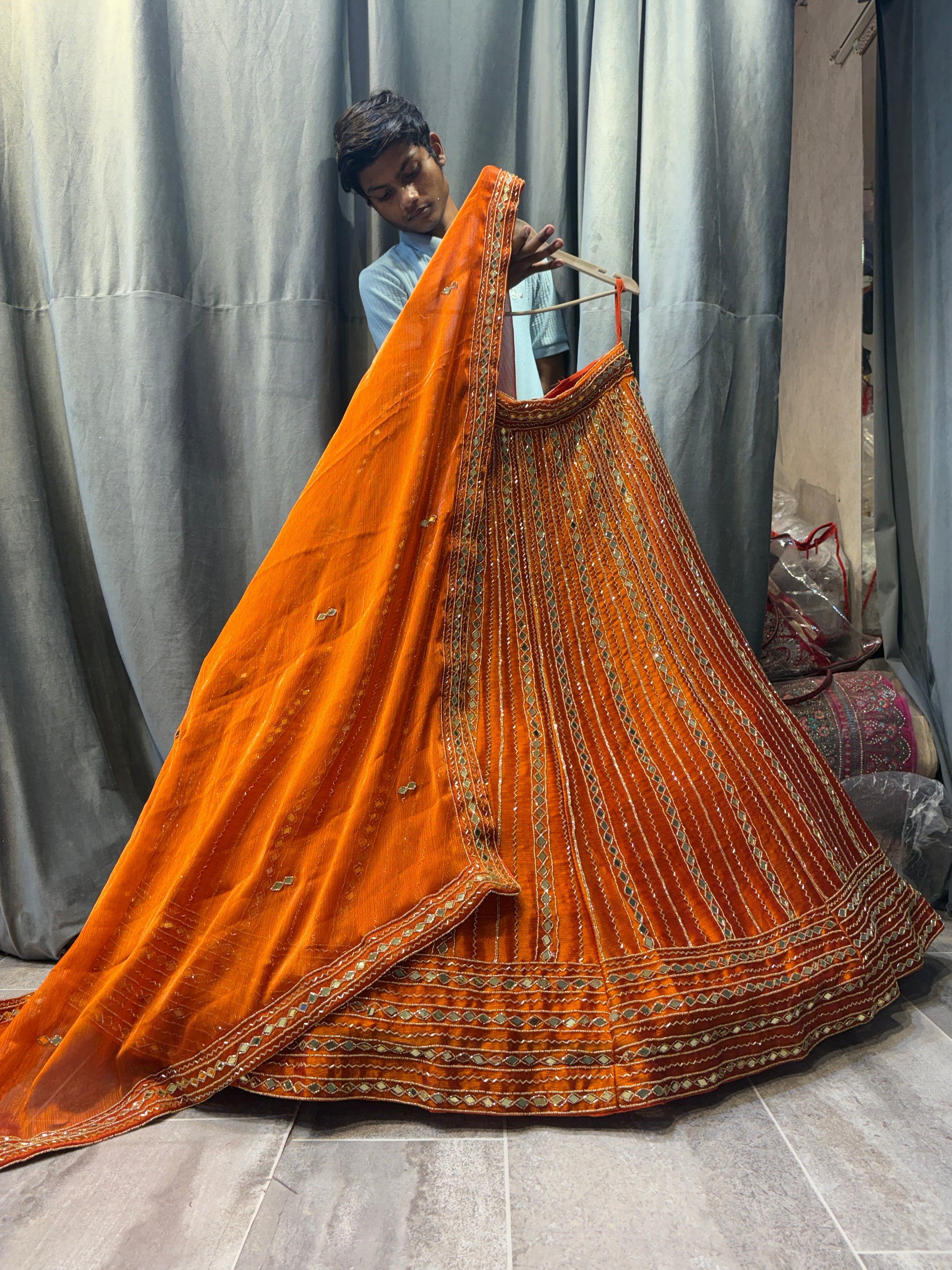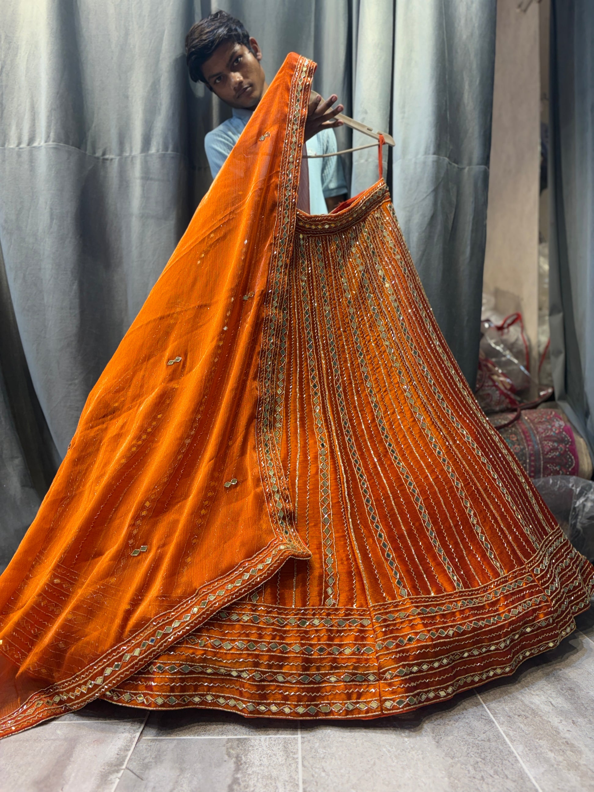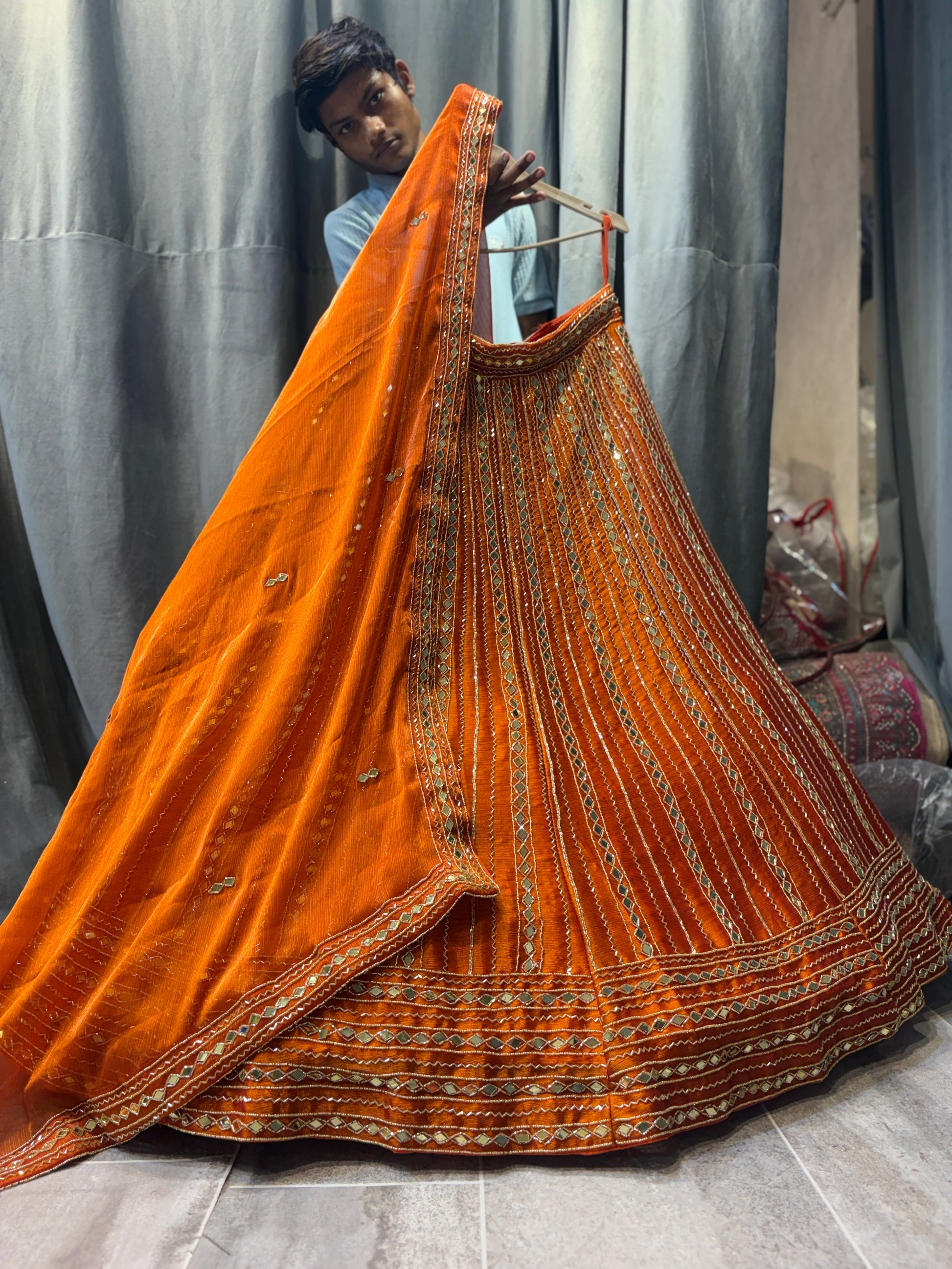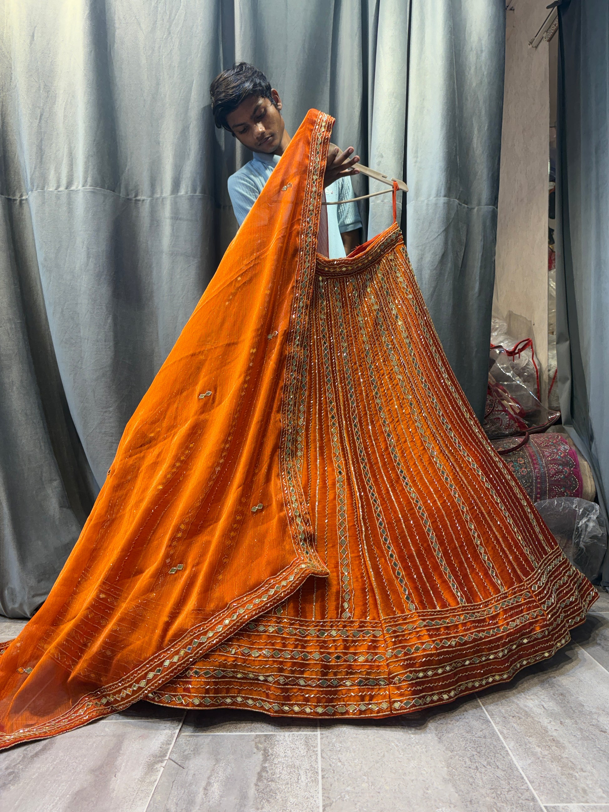 सुंदर ऑरेंज सीक्वेंस लहंगा