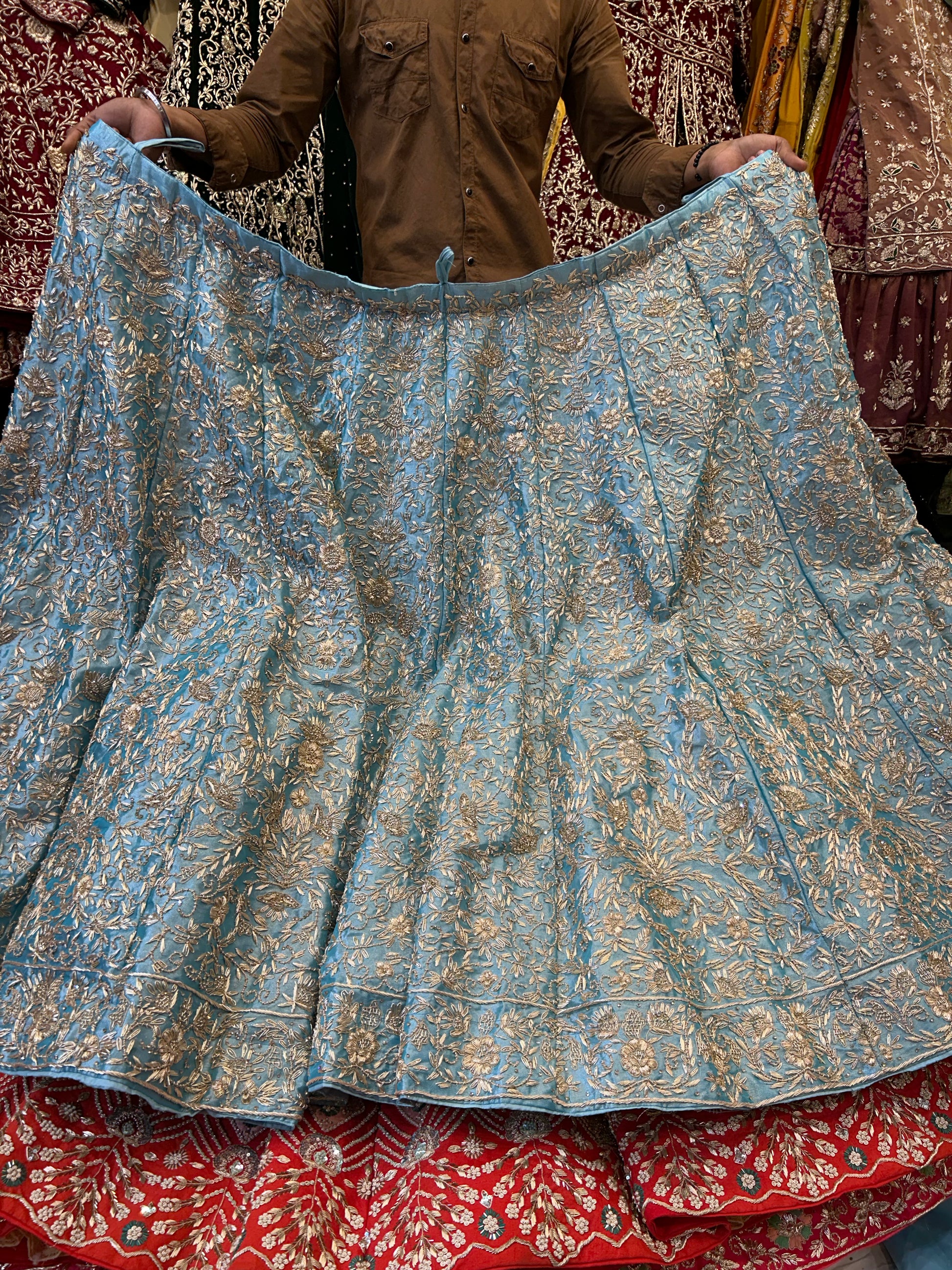 नीले रंग का डिजाइनर हस्तकला जरदोजी लहंगा