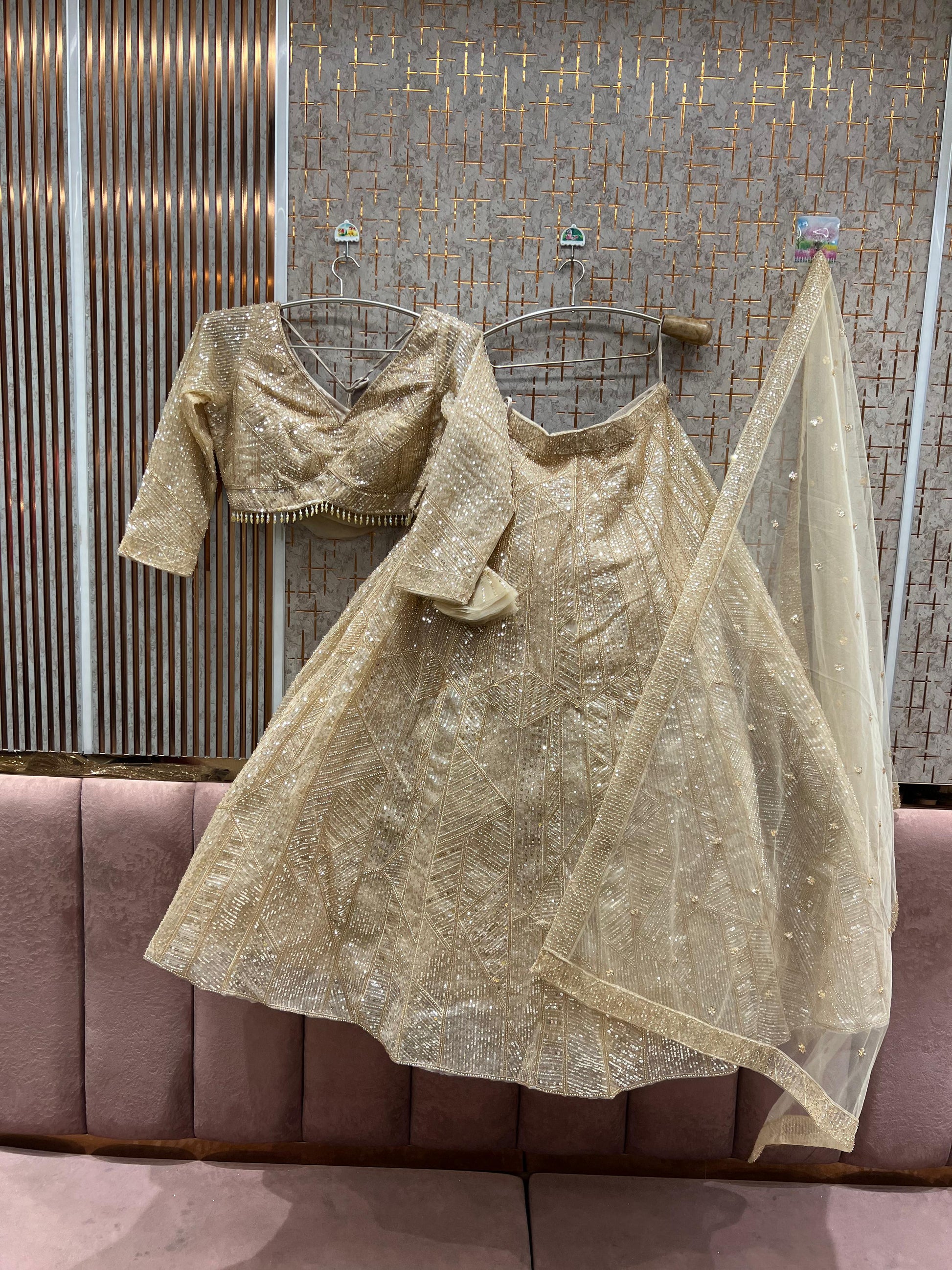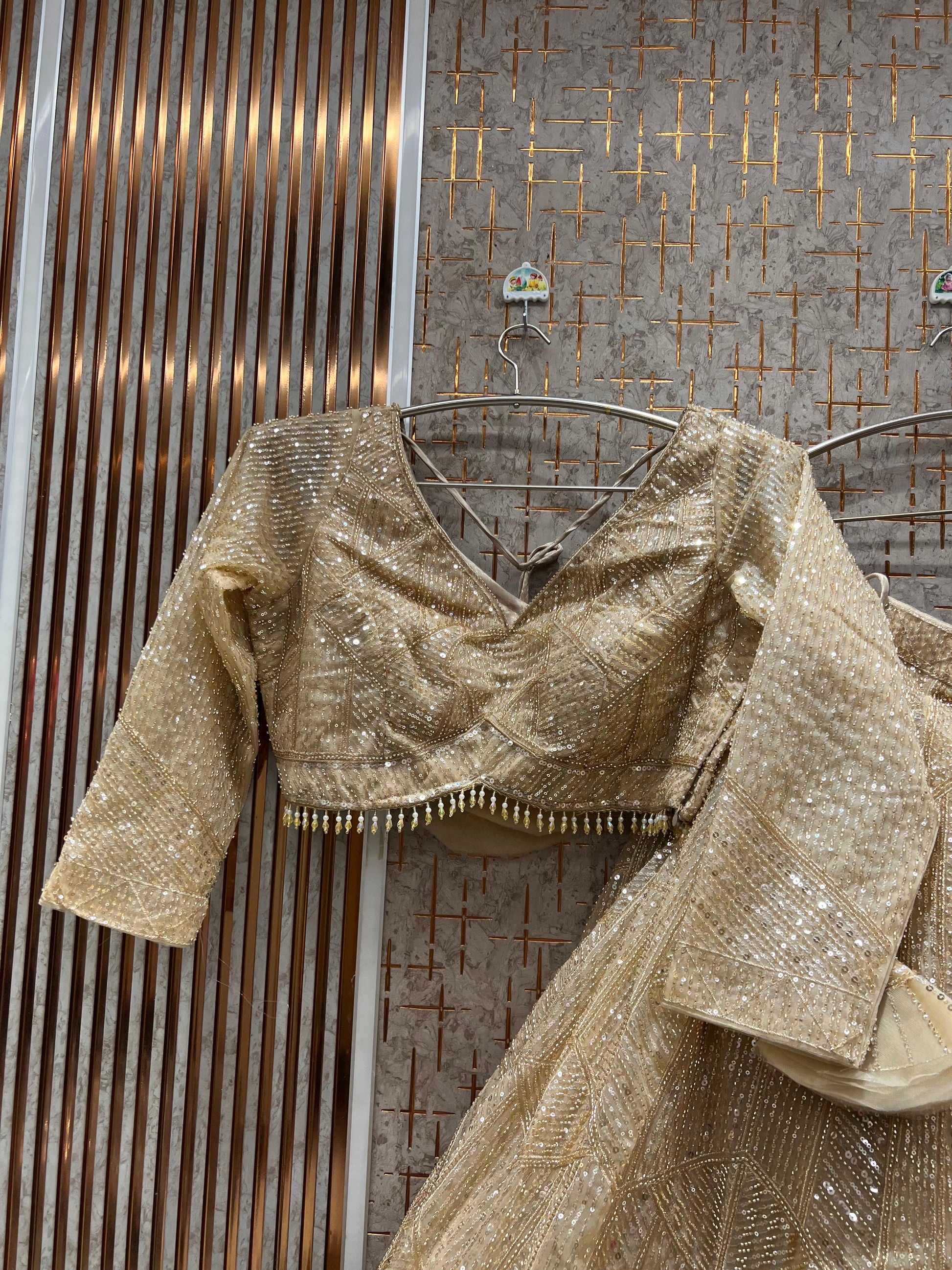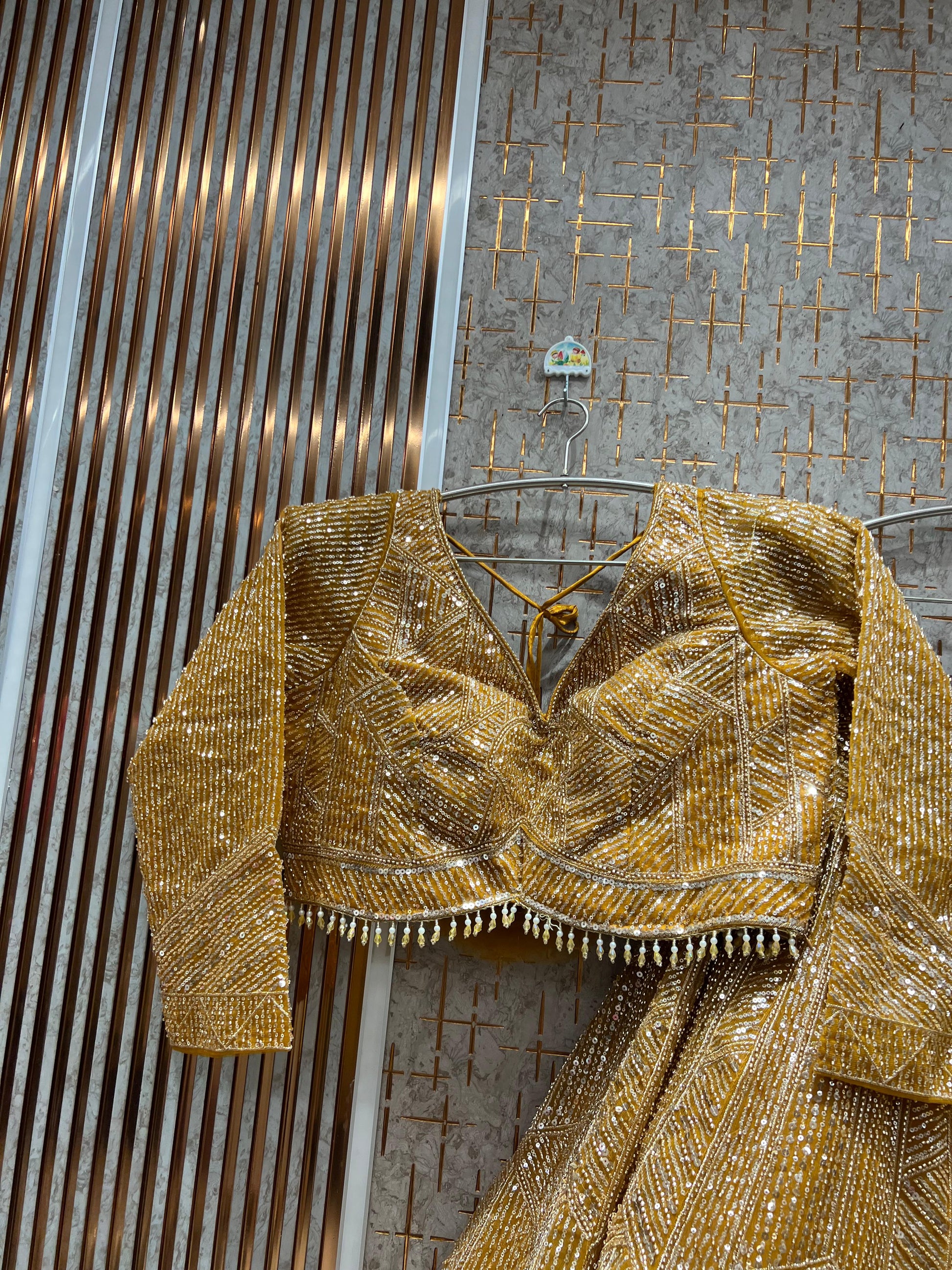 आकर्षक गोल्डन क्रॉप टॉप लहंगा