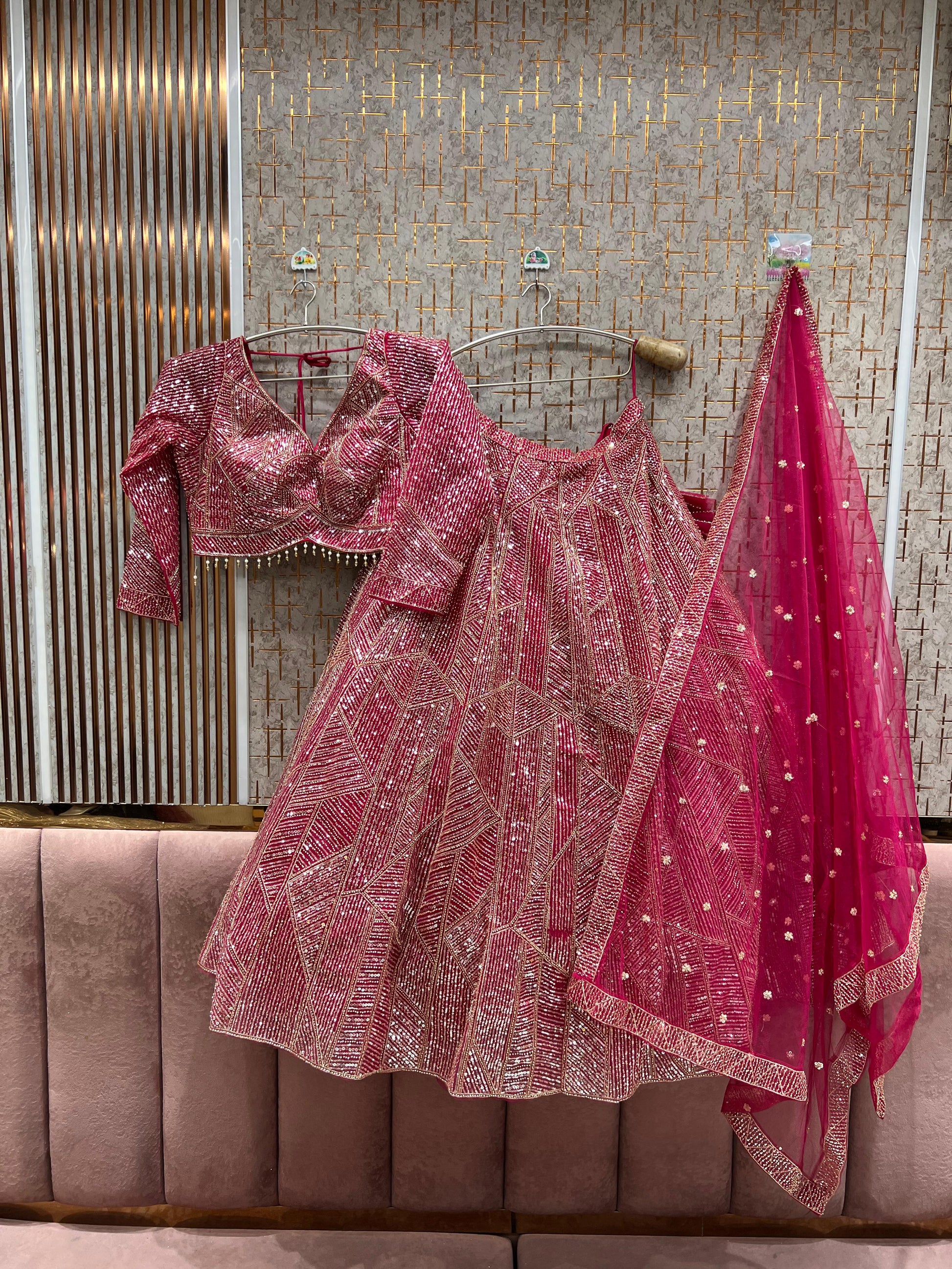 आकर्षक गहरे गुलाबी रंग का भारी दुल्हन लहंगा (खुश ग्राहक)