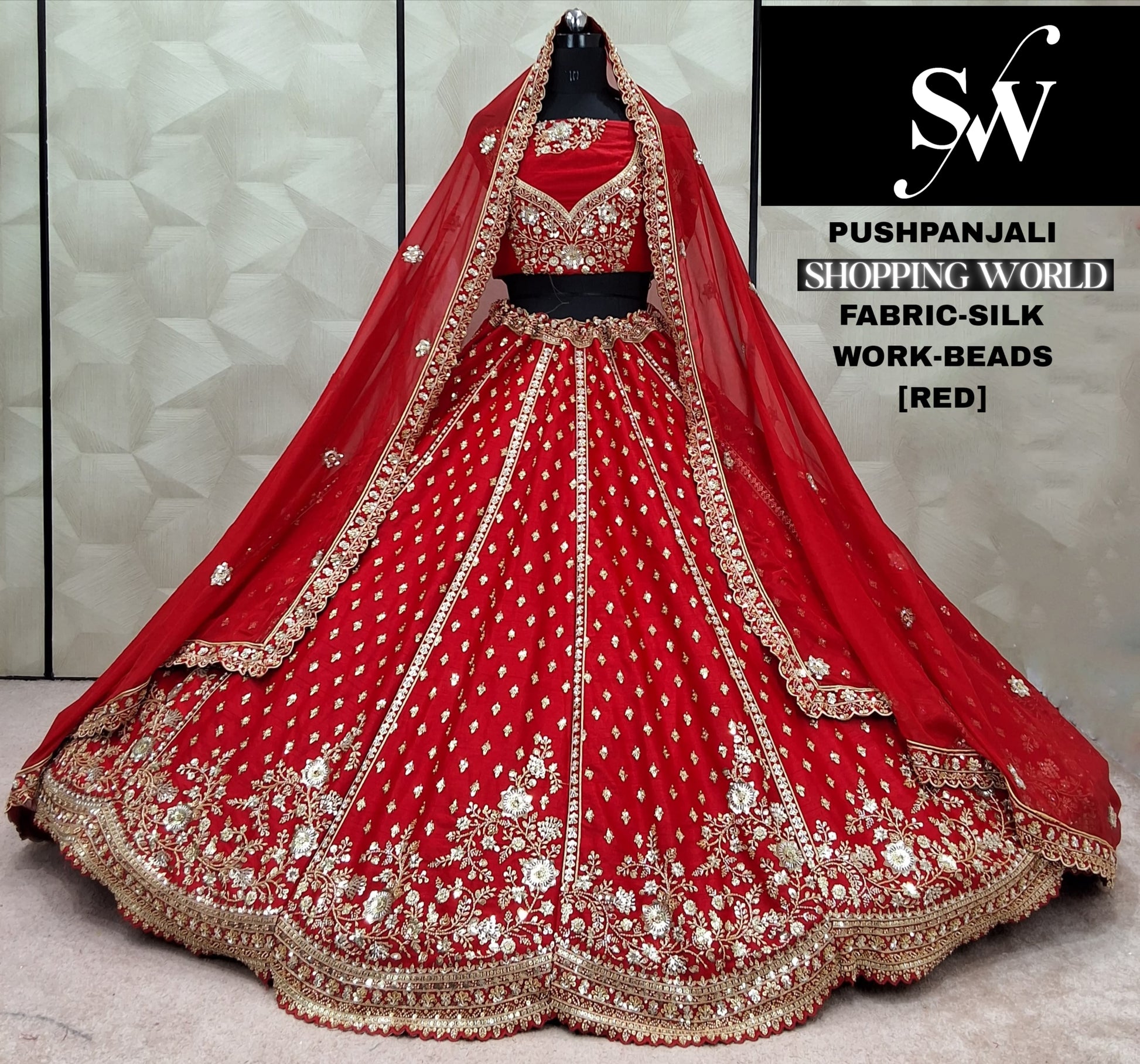 शानदार लाल रेशमी ब्राइडल लहंगा