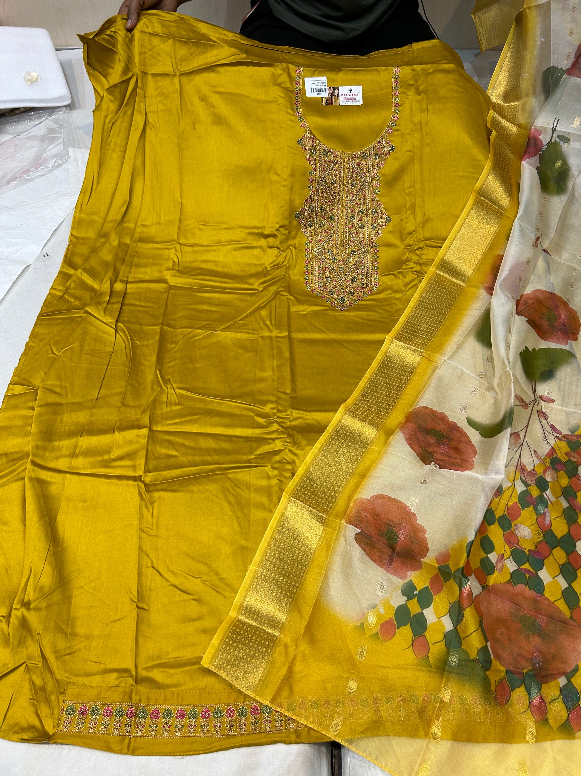शानदार पीले रंग का बिना सिला हुआ लेडीज़ सूट