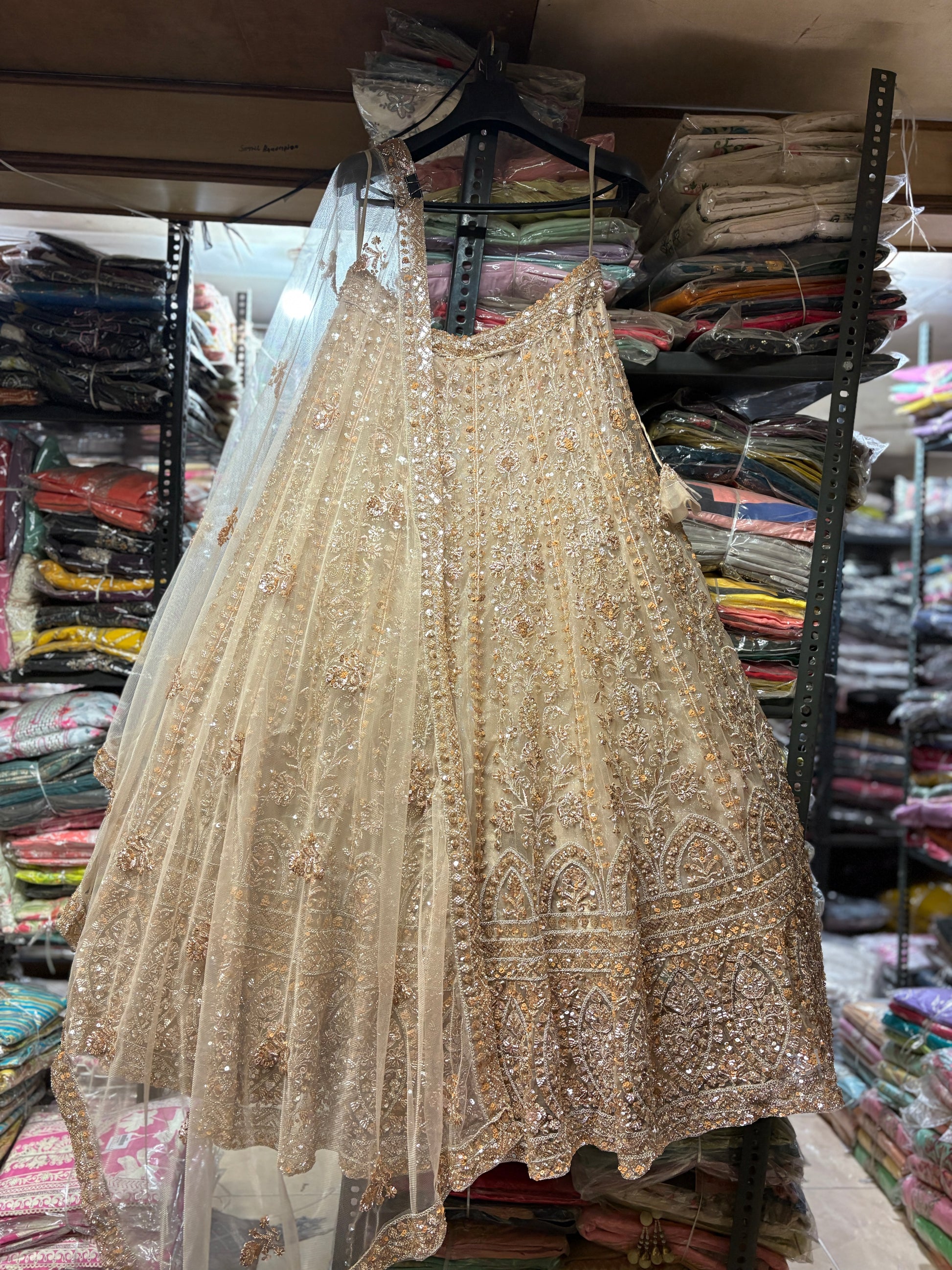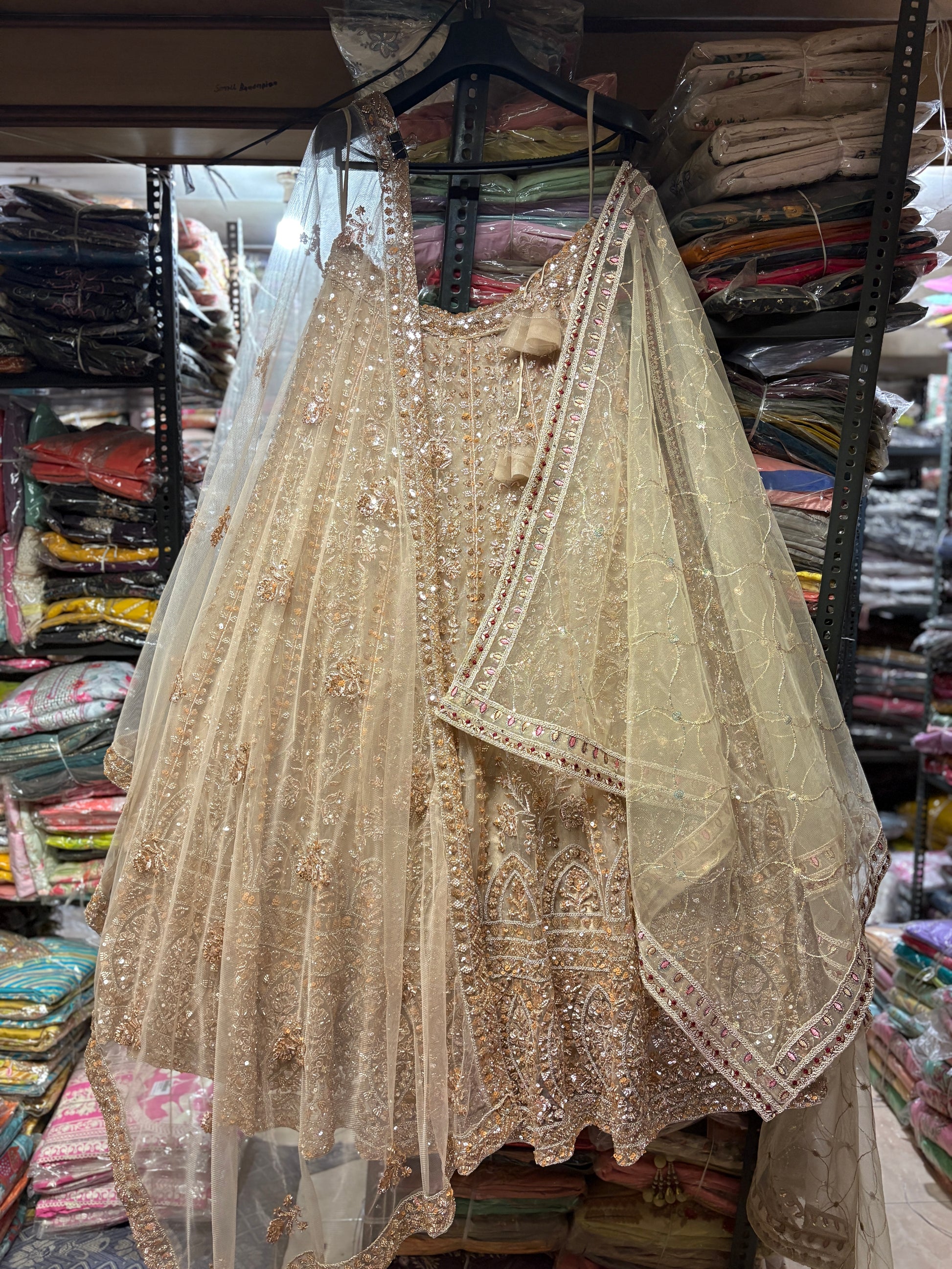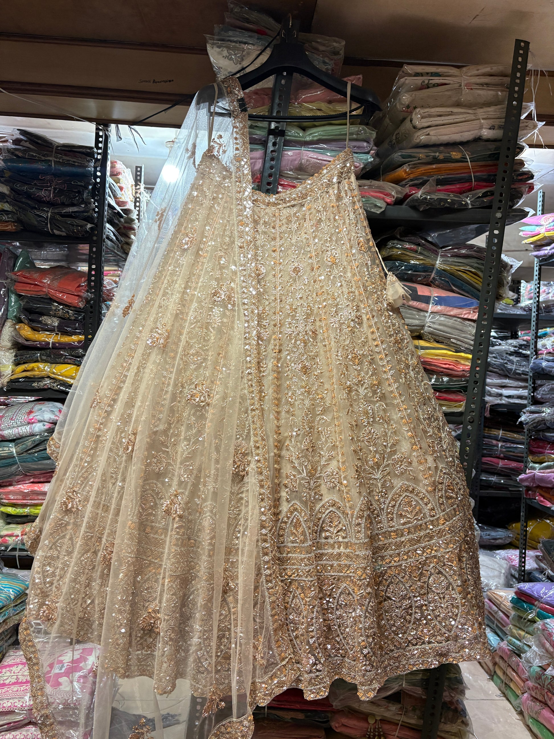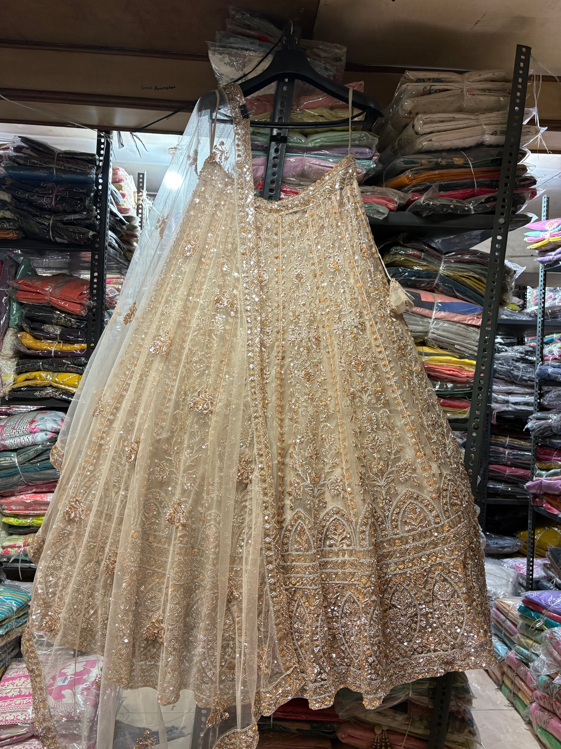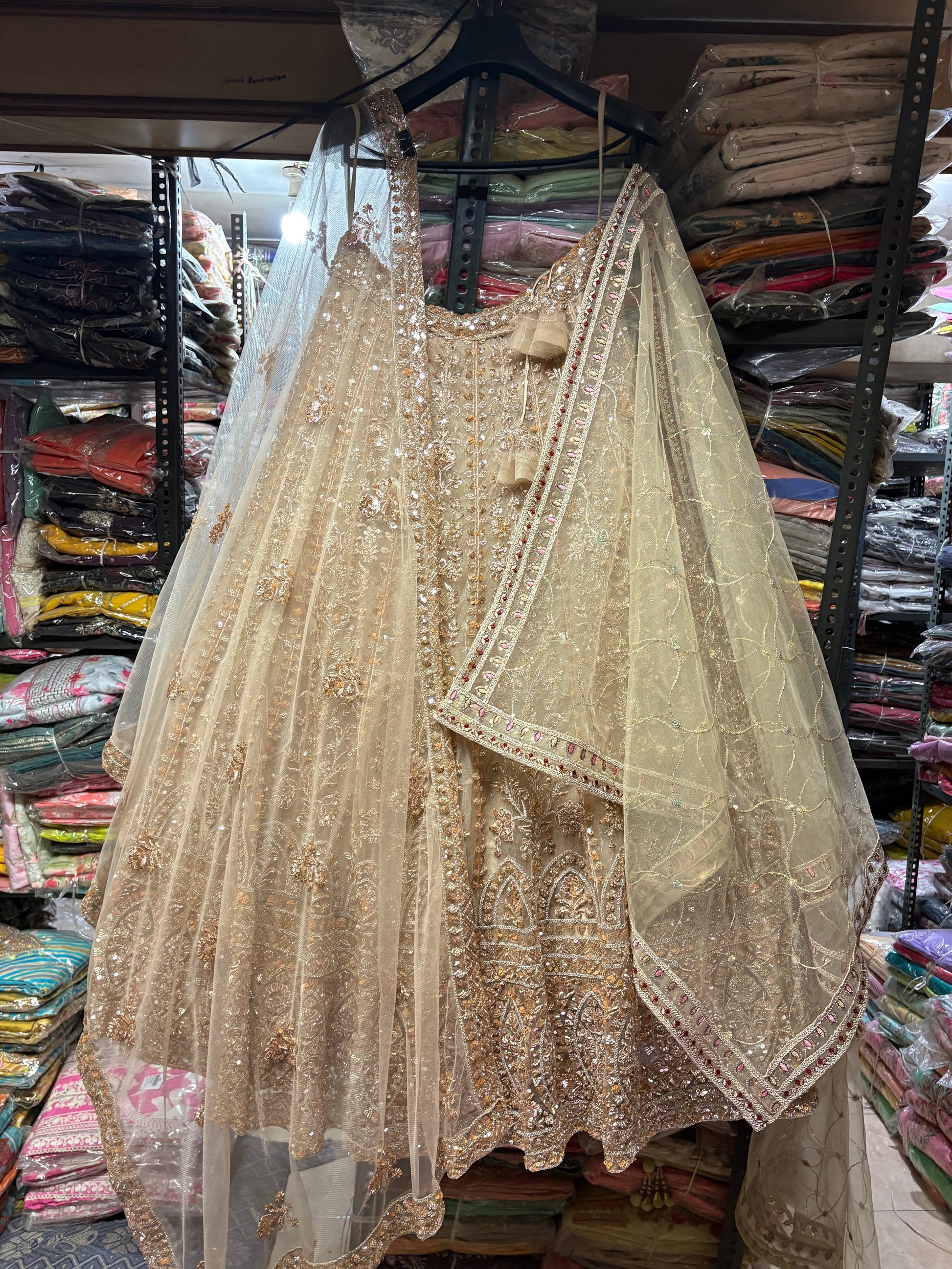 खूबसूरत गोल्डन क्रॉप टॉप लहंगा