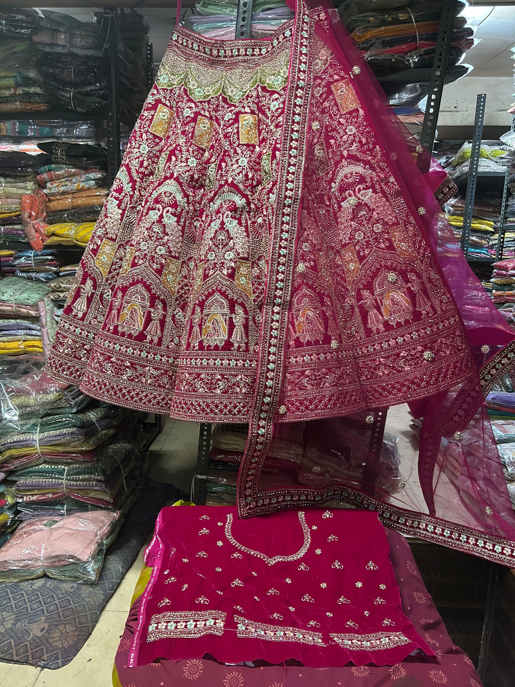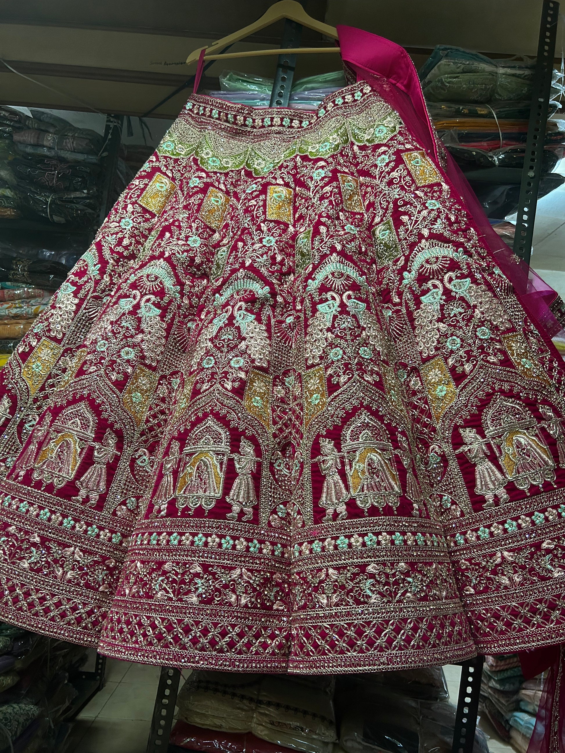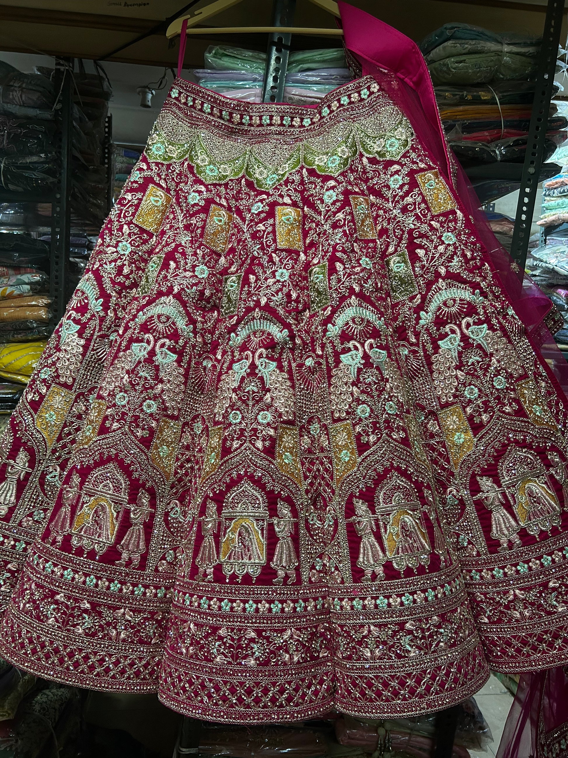 आकर्षक गहरे गुलाबी रंग का भारी दुल्हन लहंगा (खुश ग्राहक)