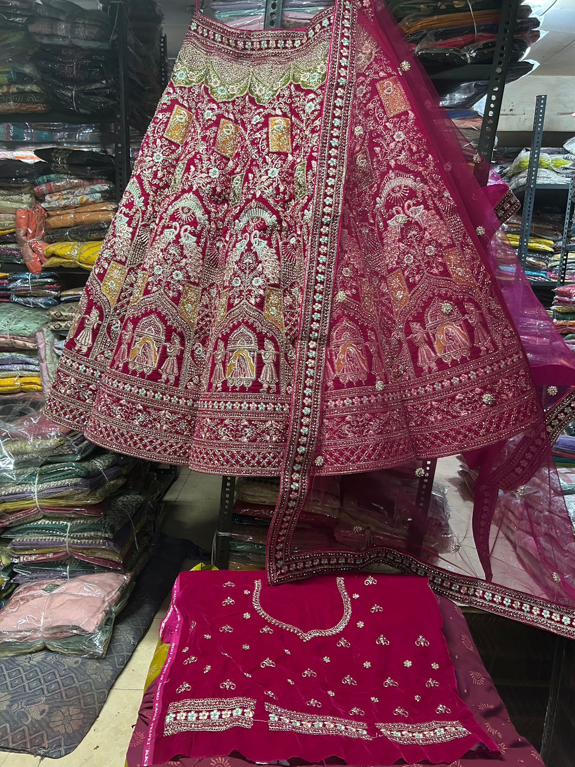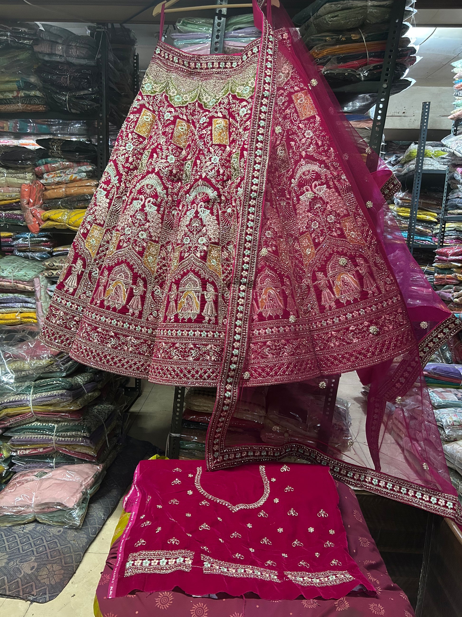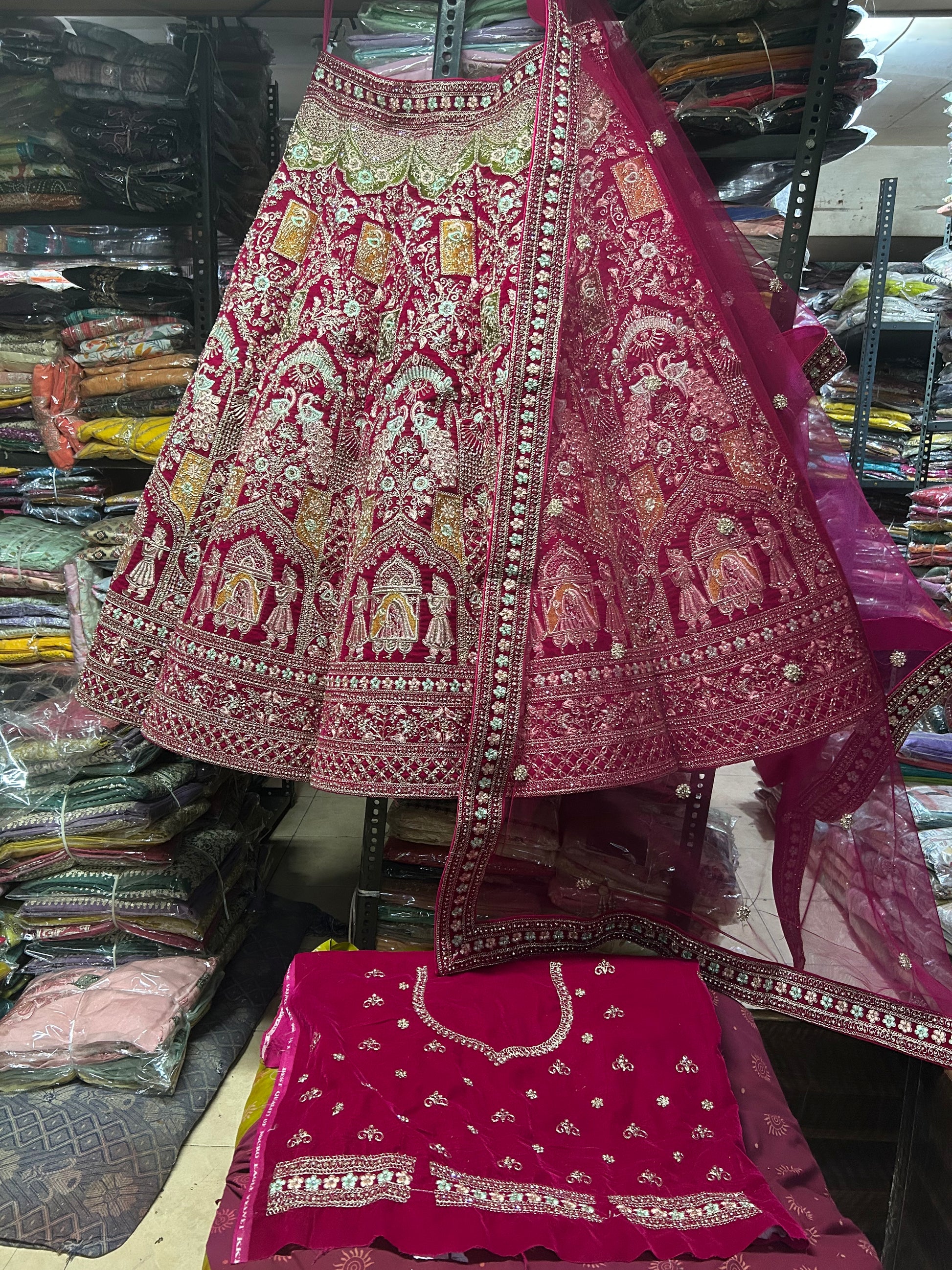 आकर्षक गहरे गुलाबी रंग का भारी दुल्हन लहंगा (खुश ग्राहक)