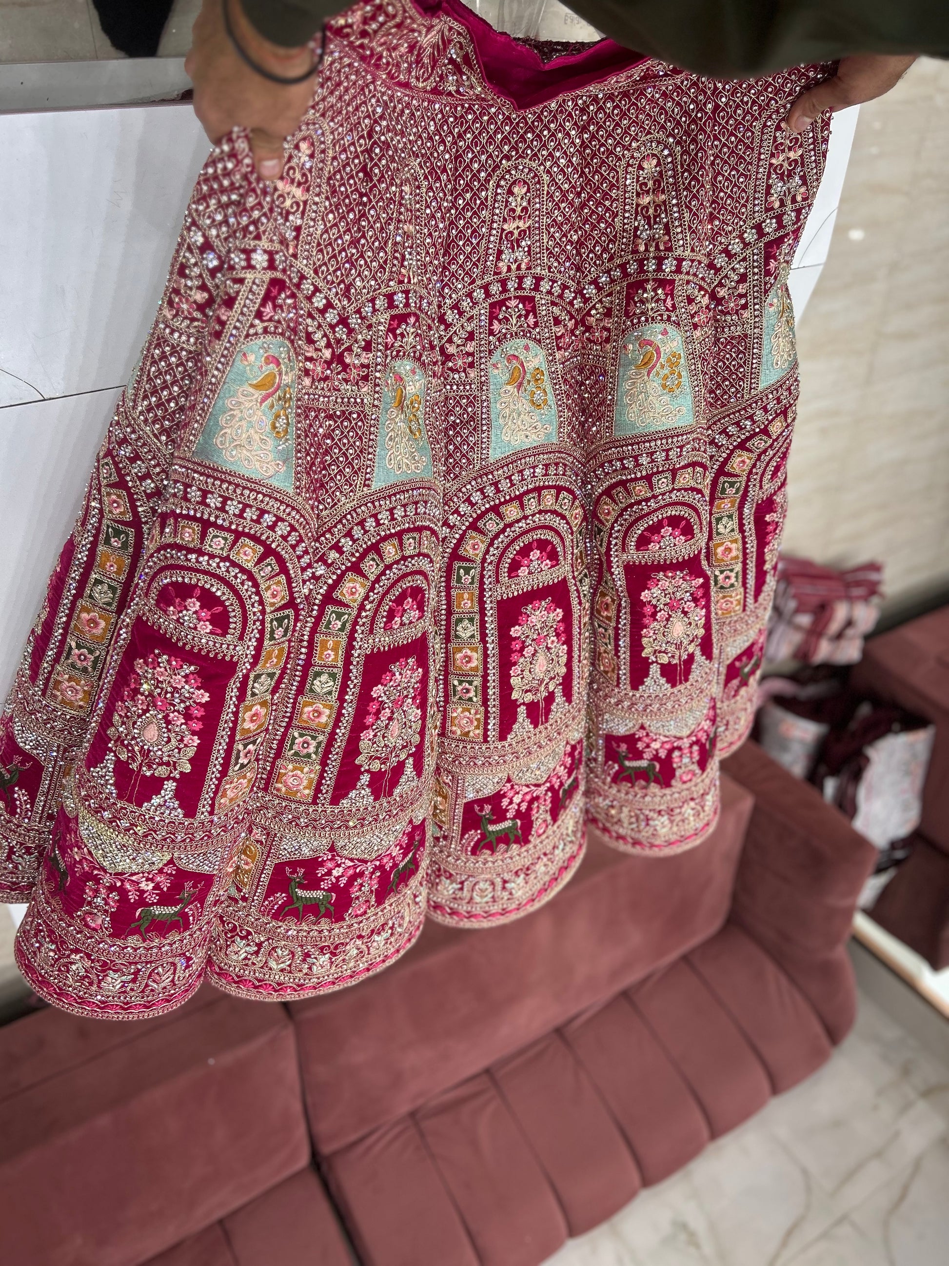 आकर्षक गहरे गुलाबी रंग का भारी दुल्हन लहंगा (खुश ग्राहक)