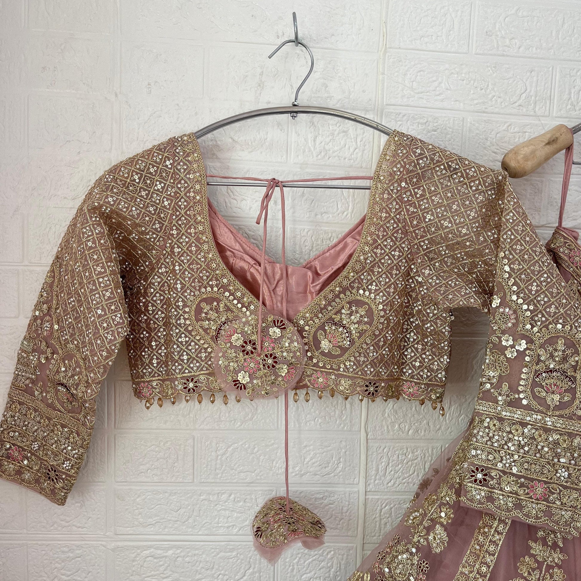 सुंदर पीच बेज क्रॉप टॉप लेहंगा, खुश ग्राहक।