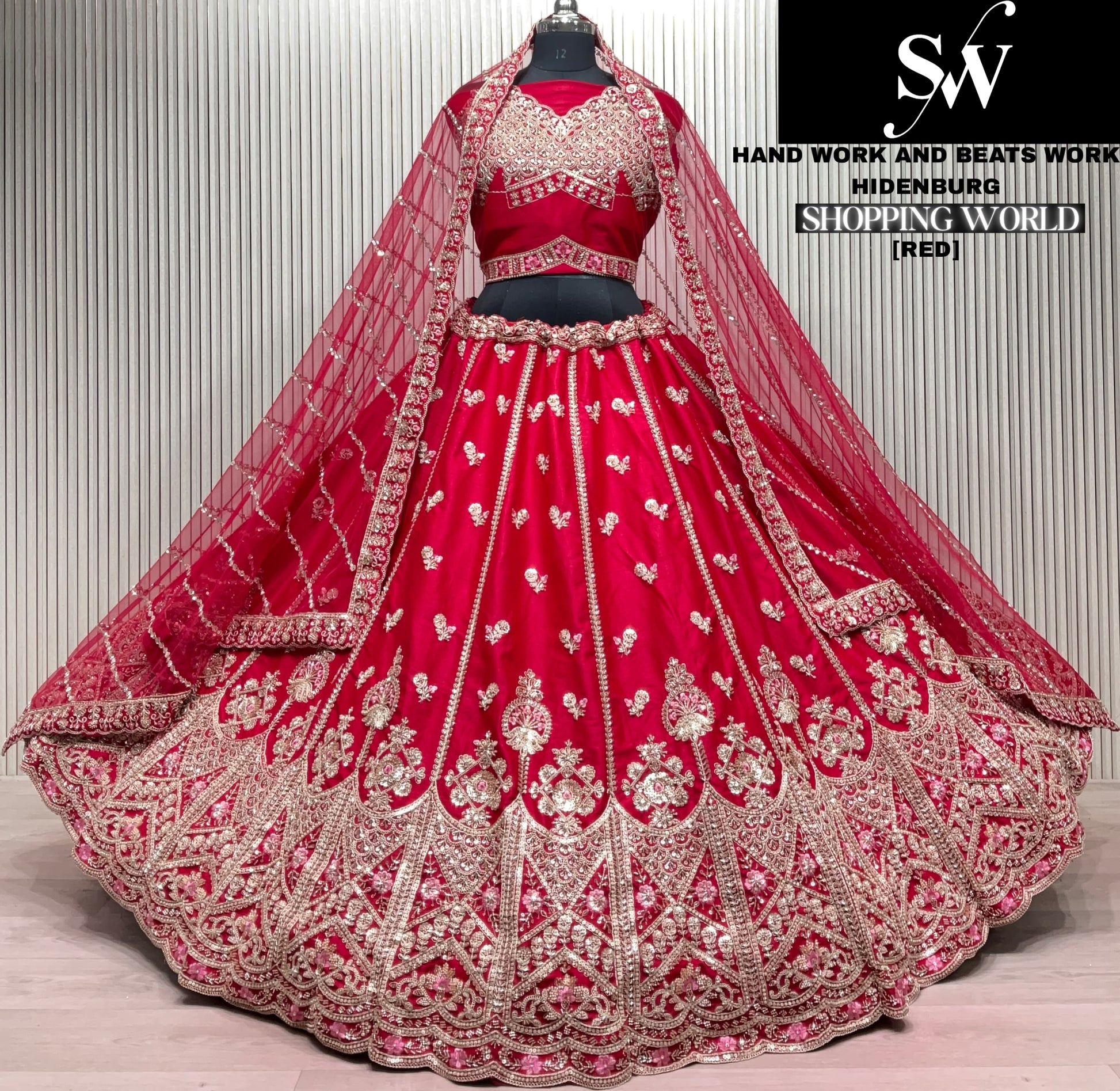 कुछ अलग, लाल रंग का हैंडवर्क वाला लेहंगा