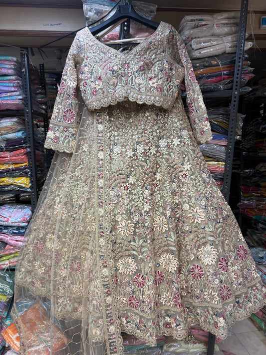 Khoobsurat Beige peach handwork Ready to Wear Crop top Lehenga