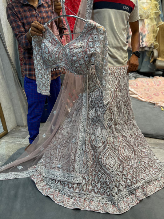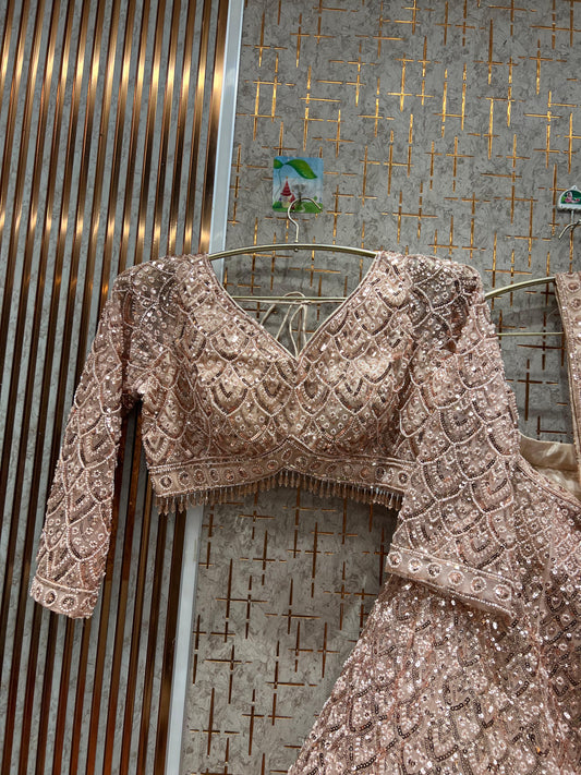 Awesome light pink peach crop top Lehenga