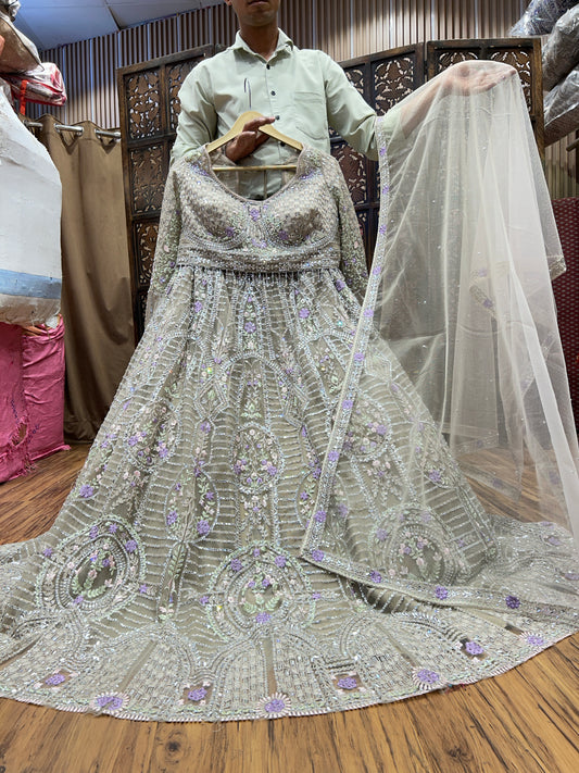 Embellished Purple White pink orange peach Crop Top Lehenga