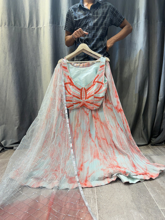 Something differentlight pink Peach blue Ready to wear Crop Top Lehenga