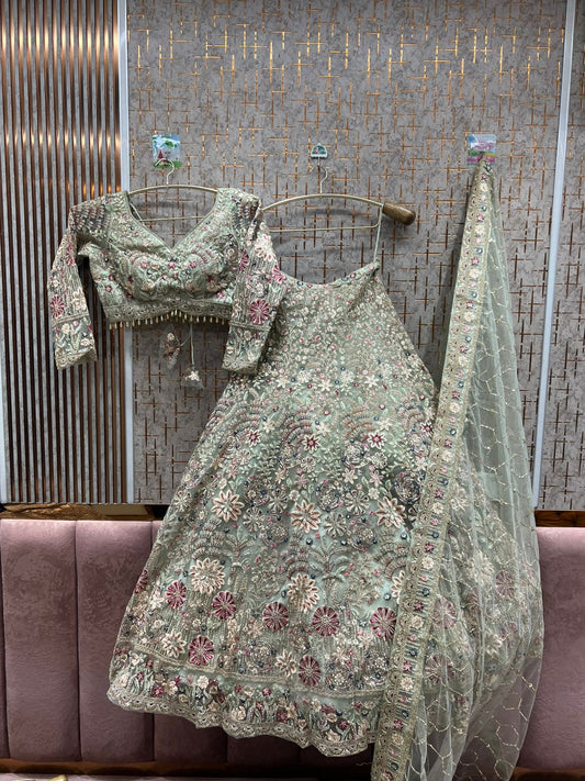 Astonishing Rani pink Morpeach blue Purple Sky blue Grey Mehendi green Coffee Wine Crop Top Lehenga
