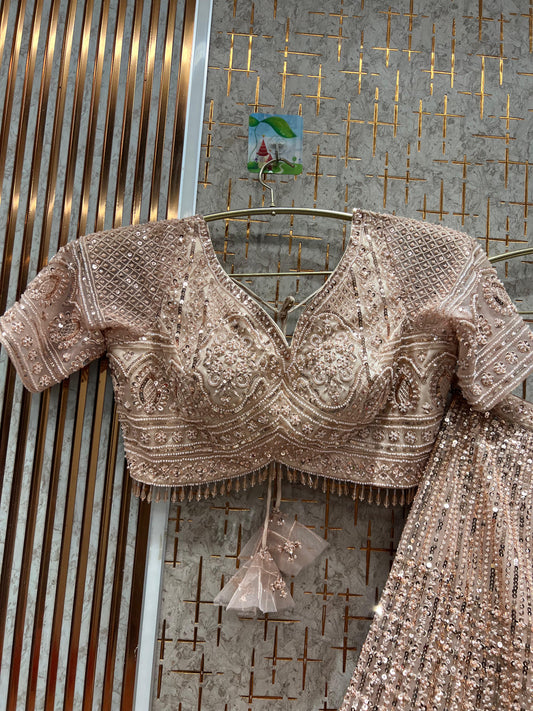 Peach pink Satin Silk Fabric Sequins Embroidered Ready to Wear Crop top Lehenga Choli & Dupatta