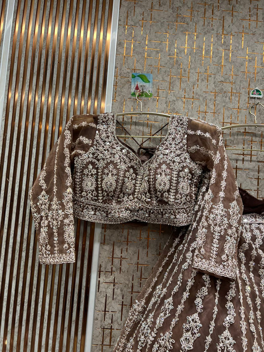 Stunning brown peach Crop Top Lehenga