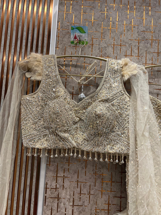 Elegant light beige peach Ready to Wear crop top Lehenga