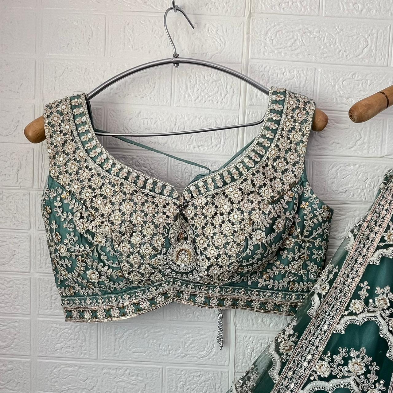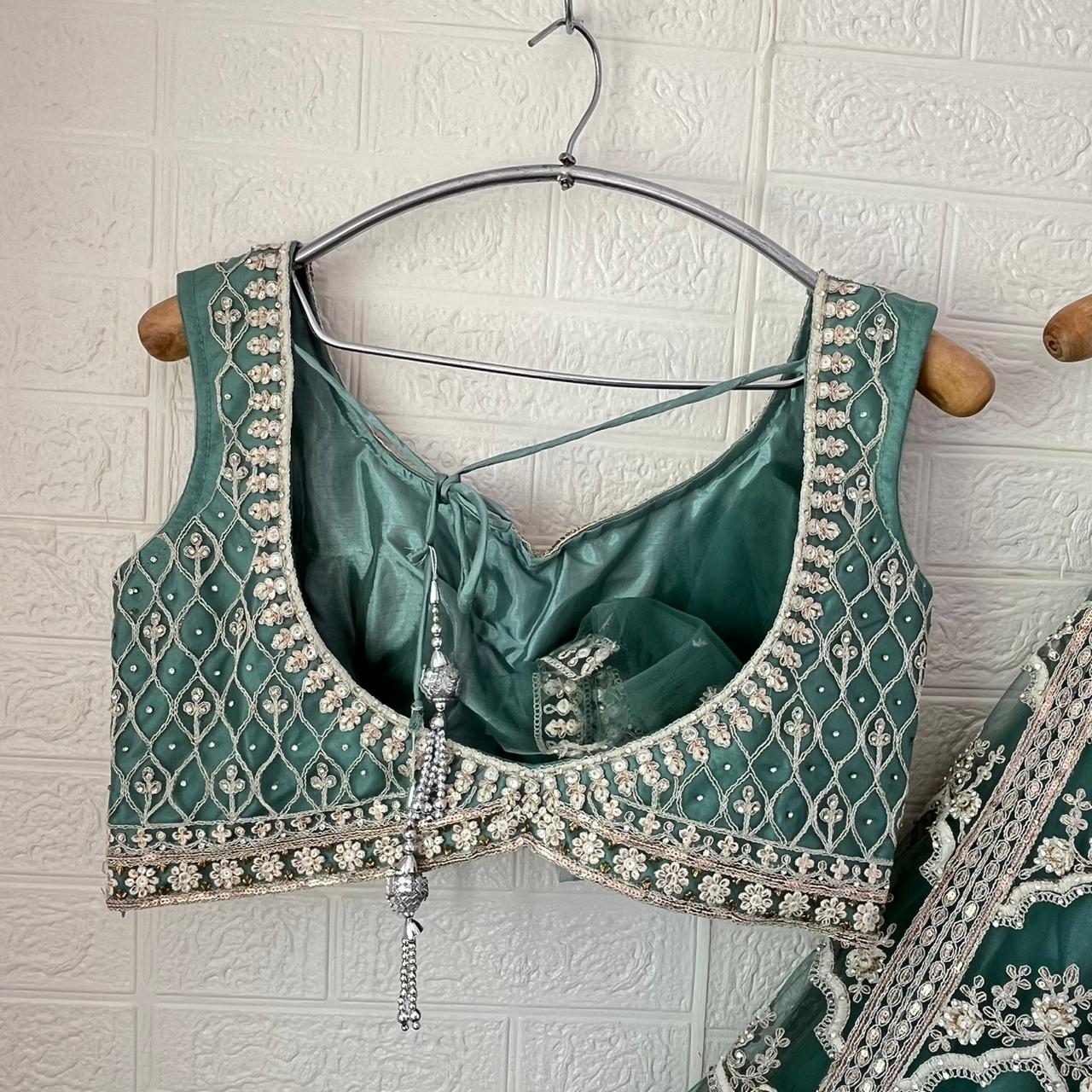Attractive pista green peacock crop top Lehenga Happy Customer