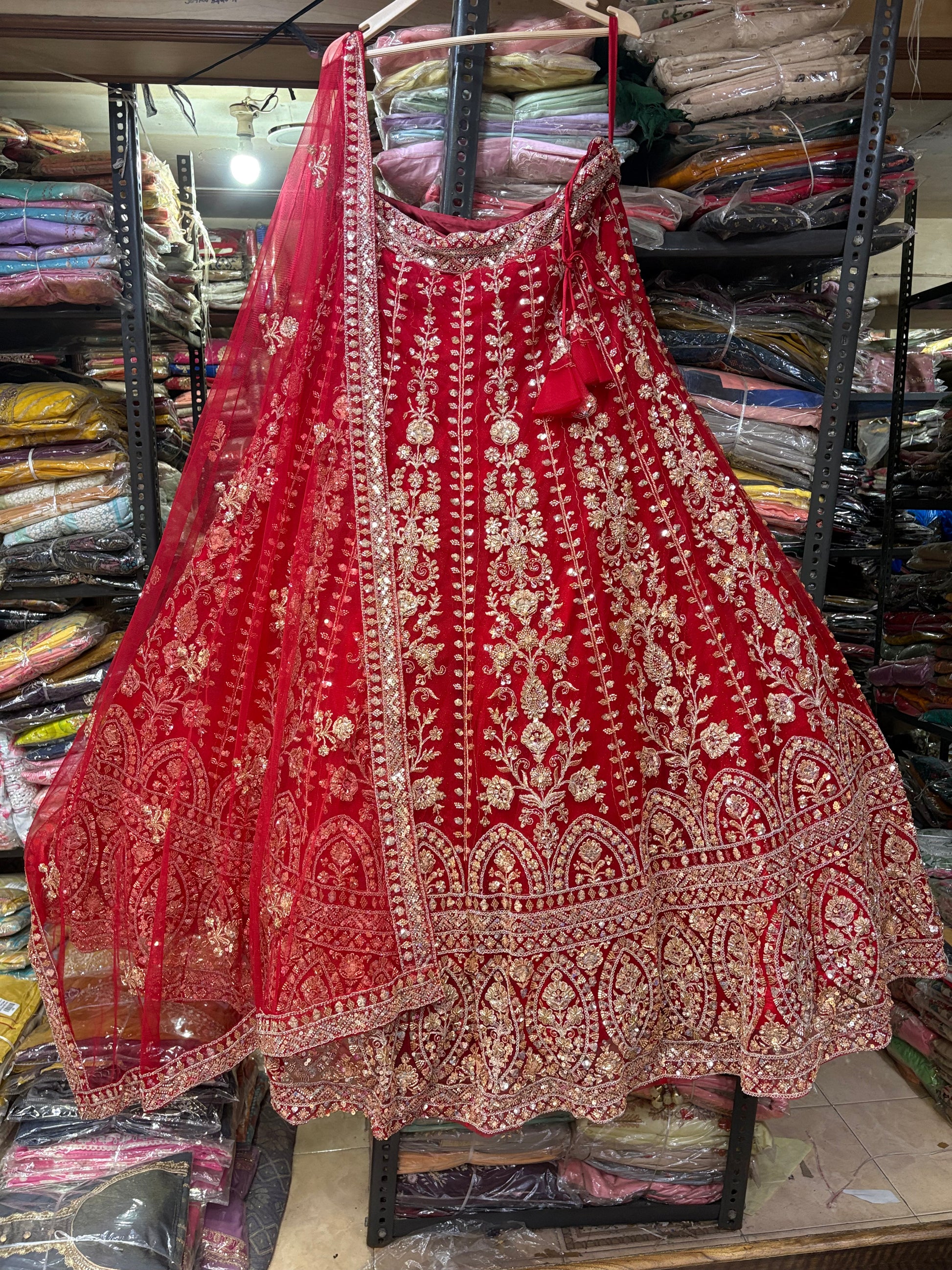 Royal Red Bridal Lehenga Double tail Dupatta with Dupatta happy customer