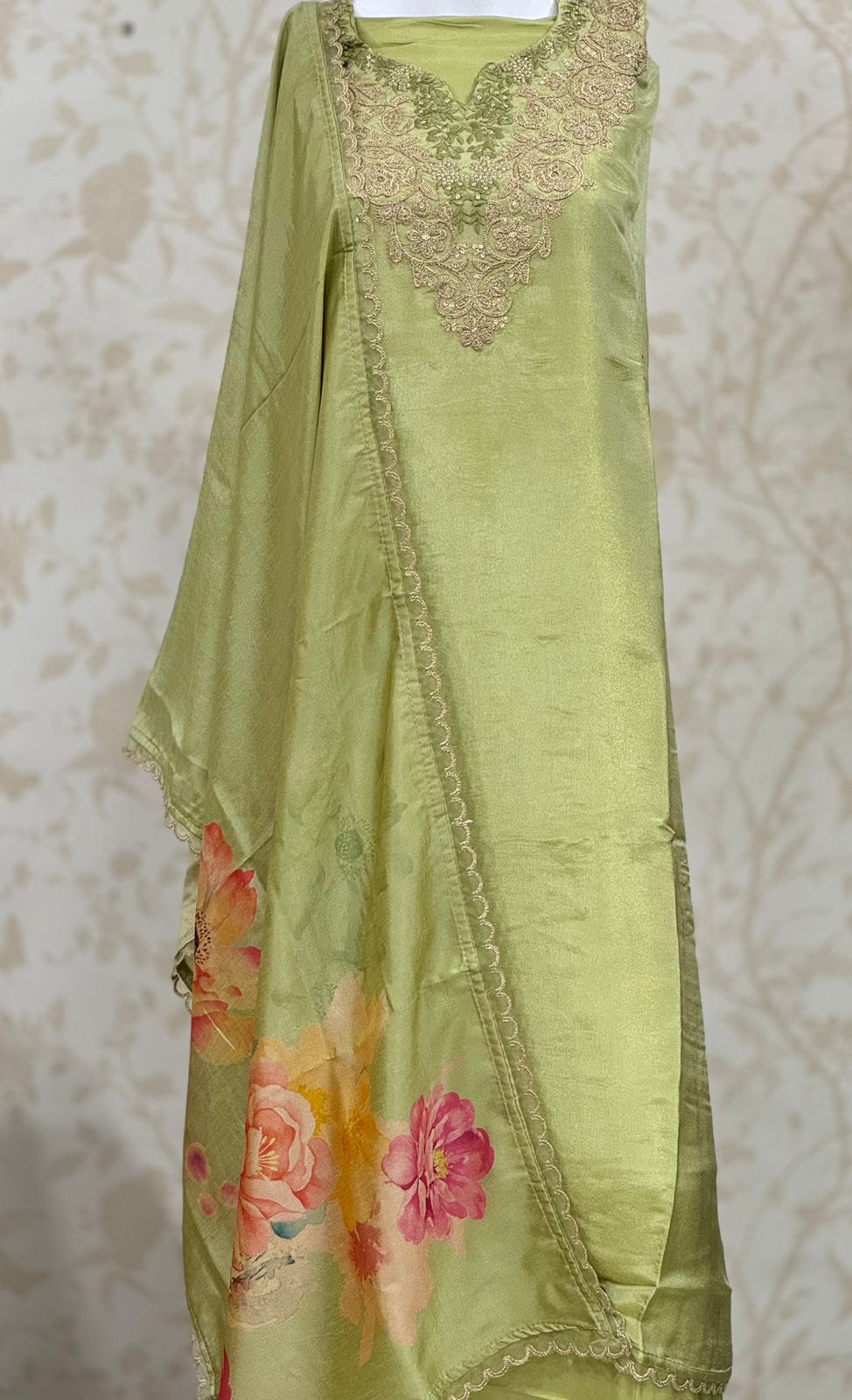 Khoobsurat green unstitched salwar suit dress material(free size)