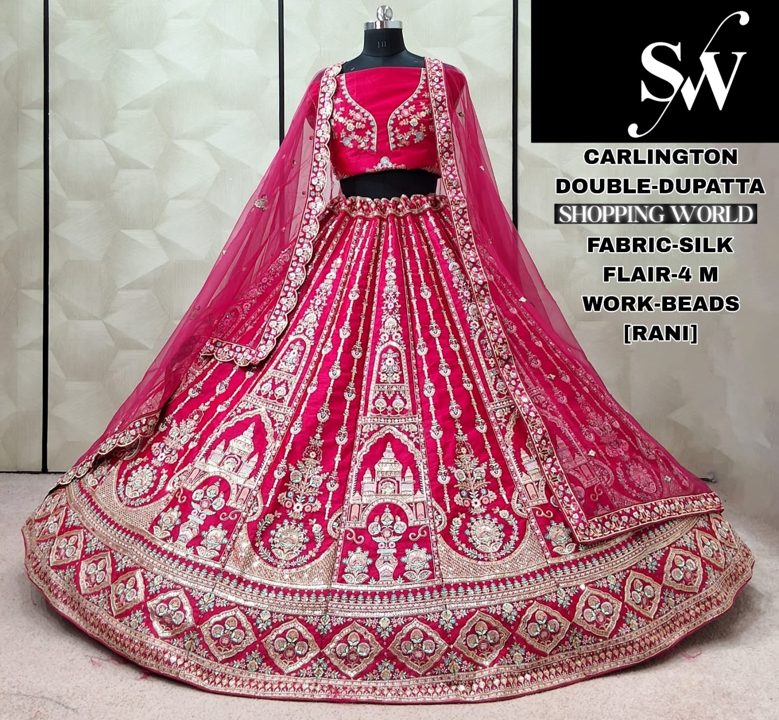 Amazing Rani pink Silk Double Dupatta Bridal Lehenga