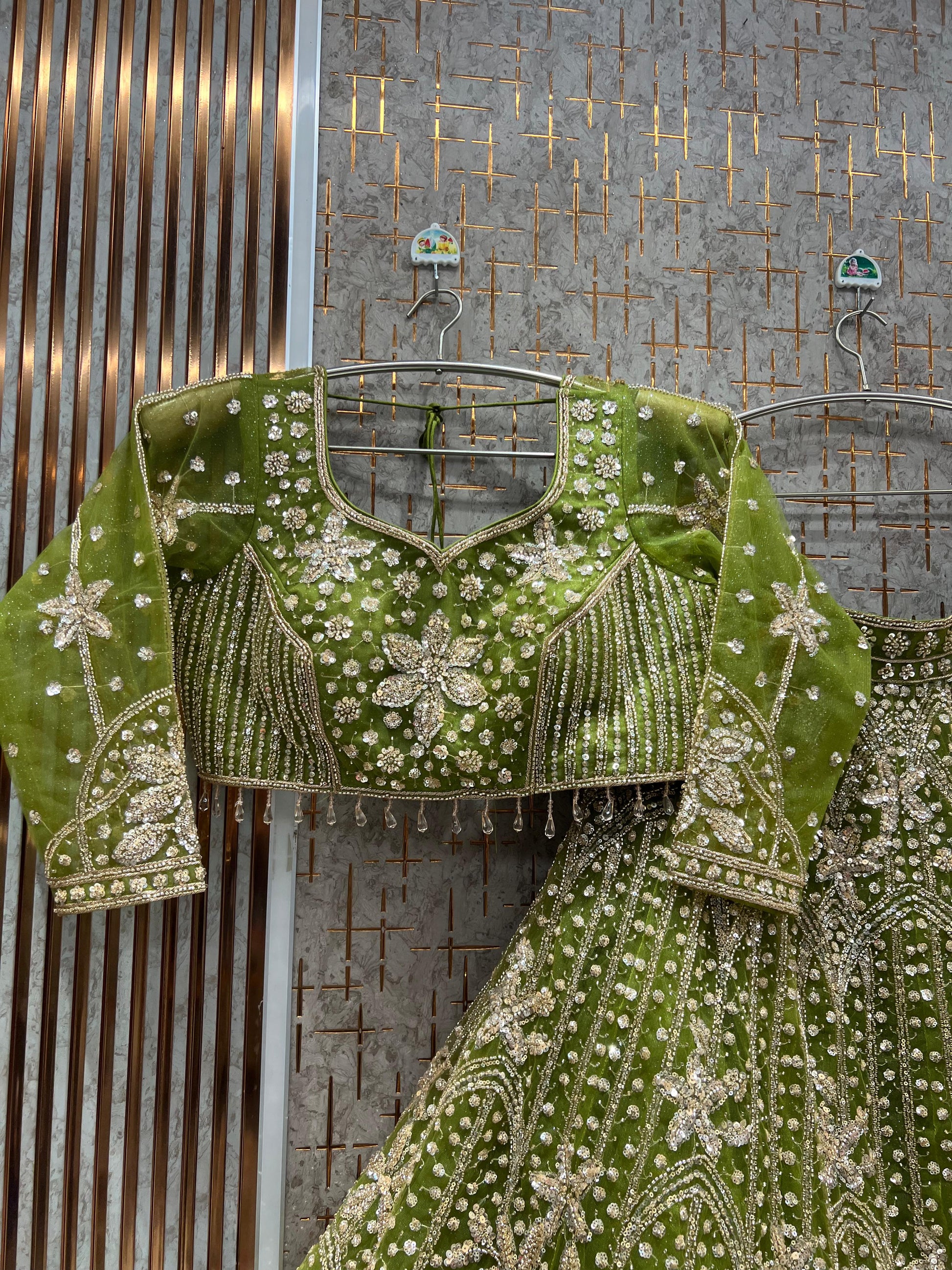 Attractive pista green peacock crop top Lehenga Happy Customer