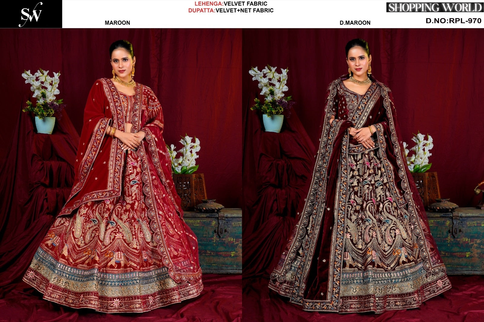 Engaging Maroon Dark maroon Velvet bridal Lehenga