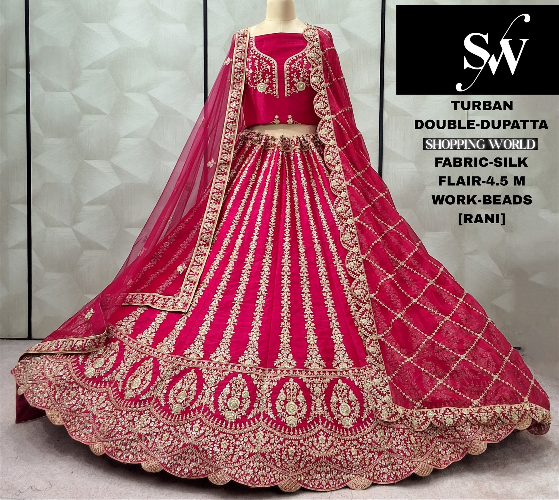 Eye Catching Rani pink Silk Double Dupatta Bridal Lehenga