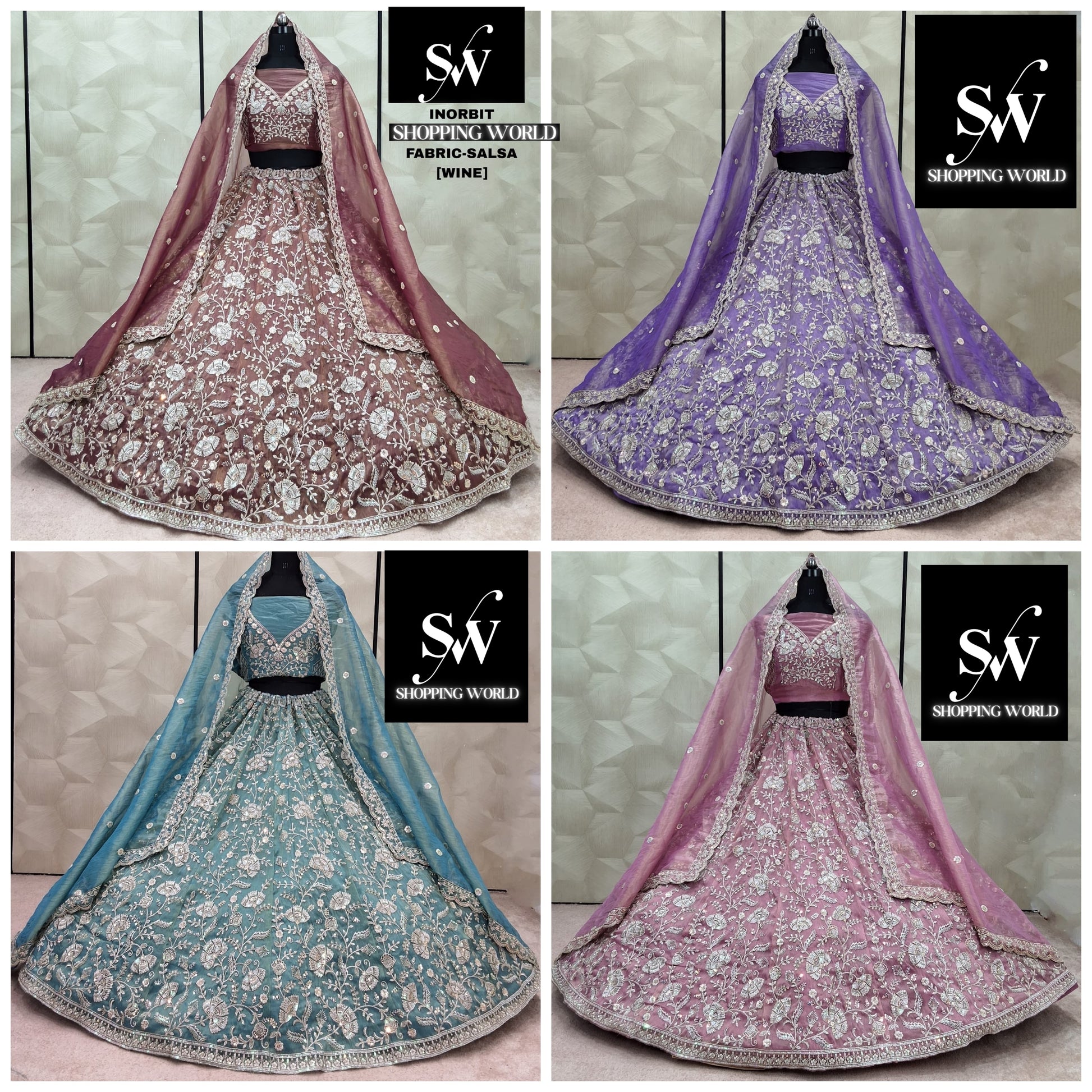 Lovely wine Purple Sky blue Pink Salsa Lehenga