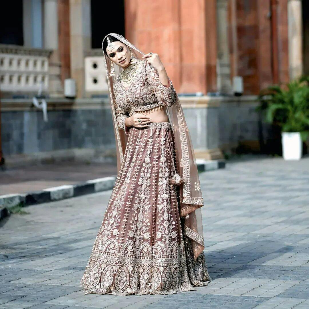 A-line lehengas, Anarkali suits, and flared gowns are flattering on most body types and help enhance your bridal look