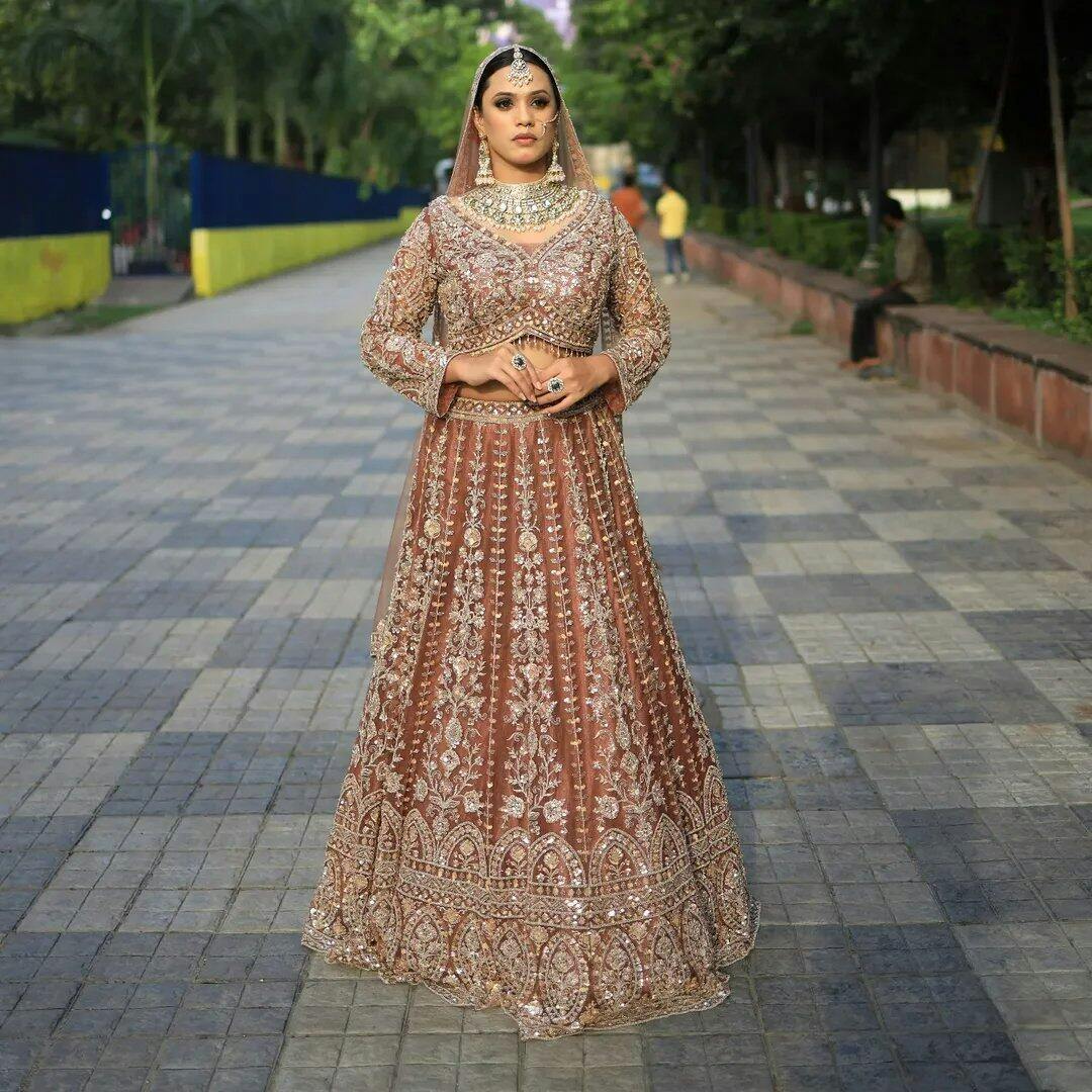 Shopping World ka brown beige peach crop top lehenga ekdum alag aur classy combination hai. Maine ise ek day wedding function mein carry kiya tha, aur honestly color bohot hi fresh aur eye-catching laga. Brown aur beige ka subtle tone peach ke soft shade ke saath mix hoke ek modern yet traditional vibe deta hai. Crop top ka stylish cut aur lehenga ka embroidery detailing ne poora look elevate kar diya. Lightweight hone ki wajah se dance floor par bhi comfortable tha