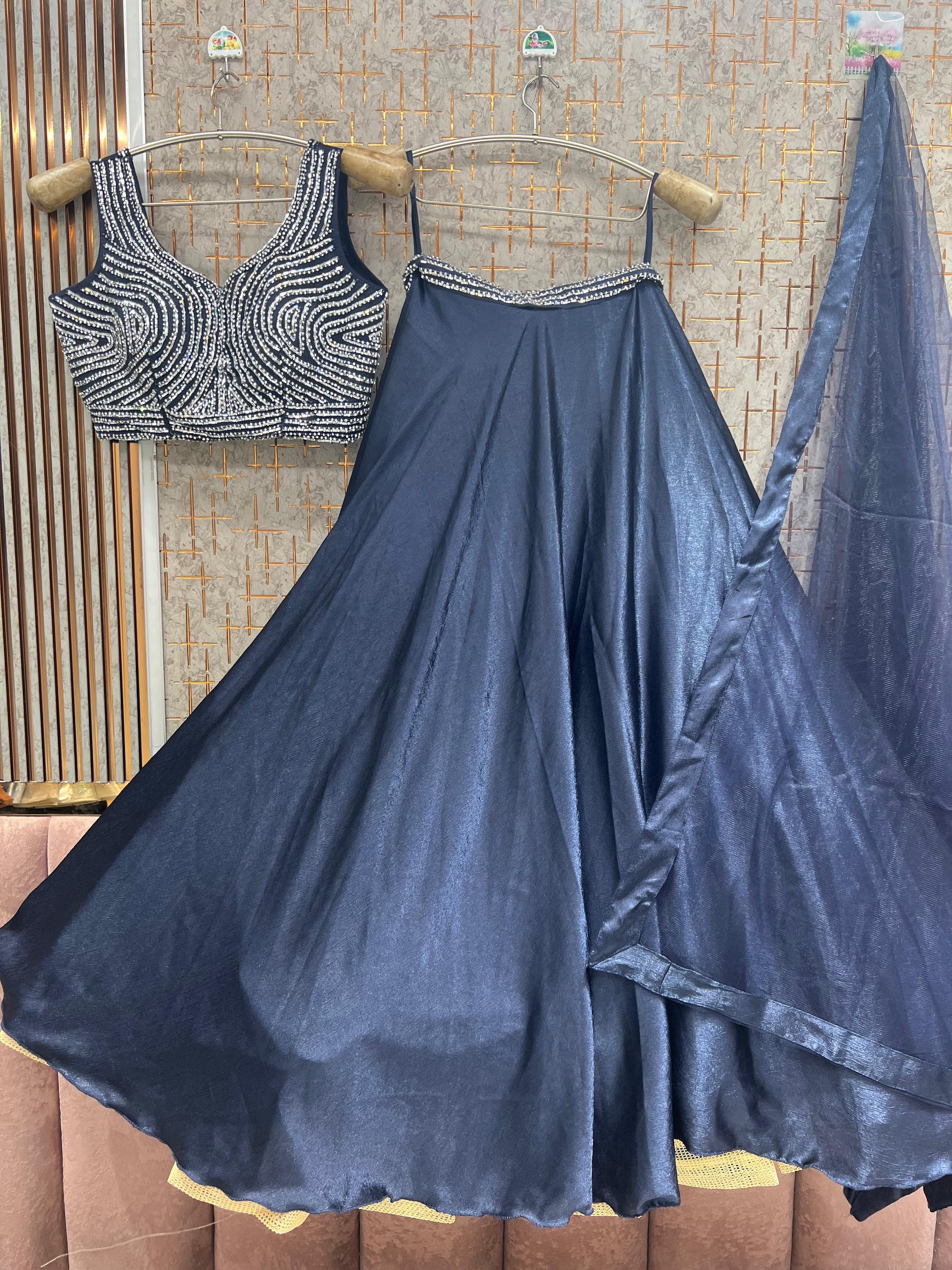 Dark Blue Crop Top Lehenga