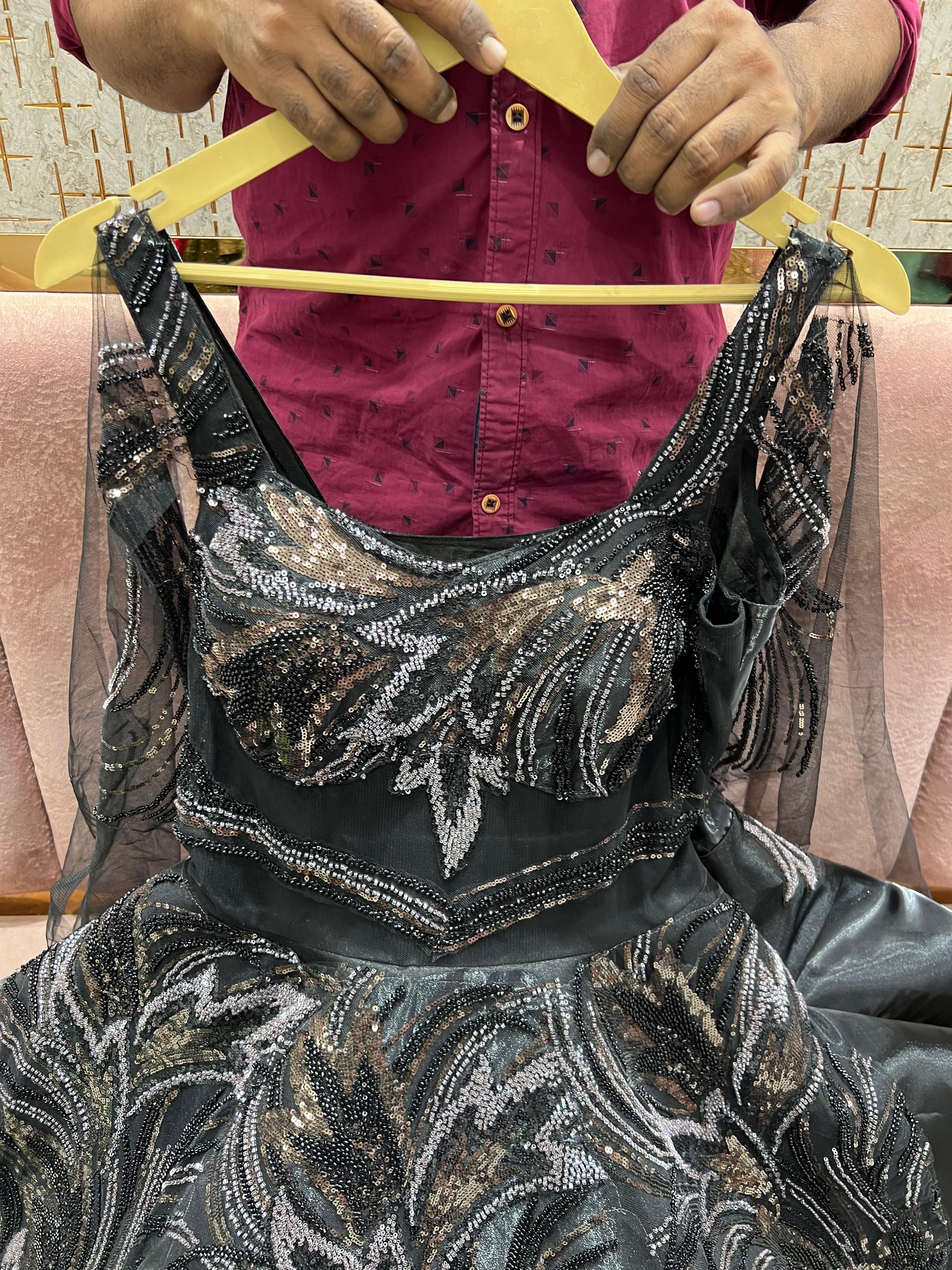 - ₹10,000 – ₹15,000: Glamorous gowns with detailed embroidery and embellishments