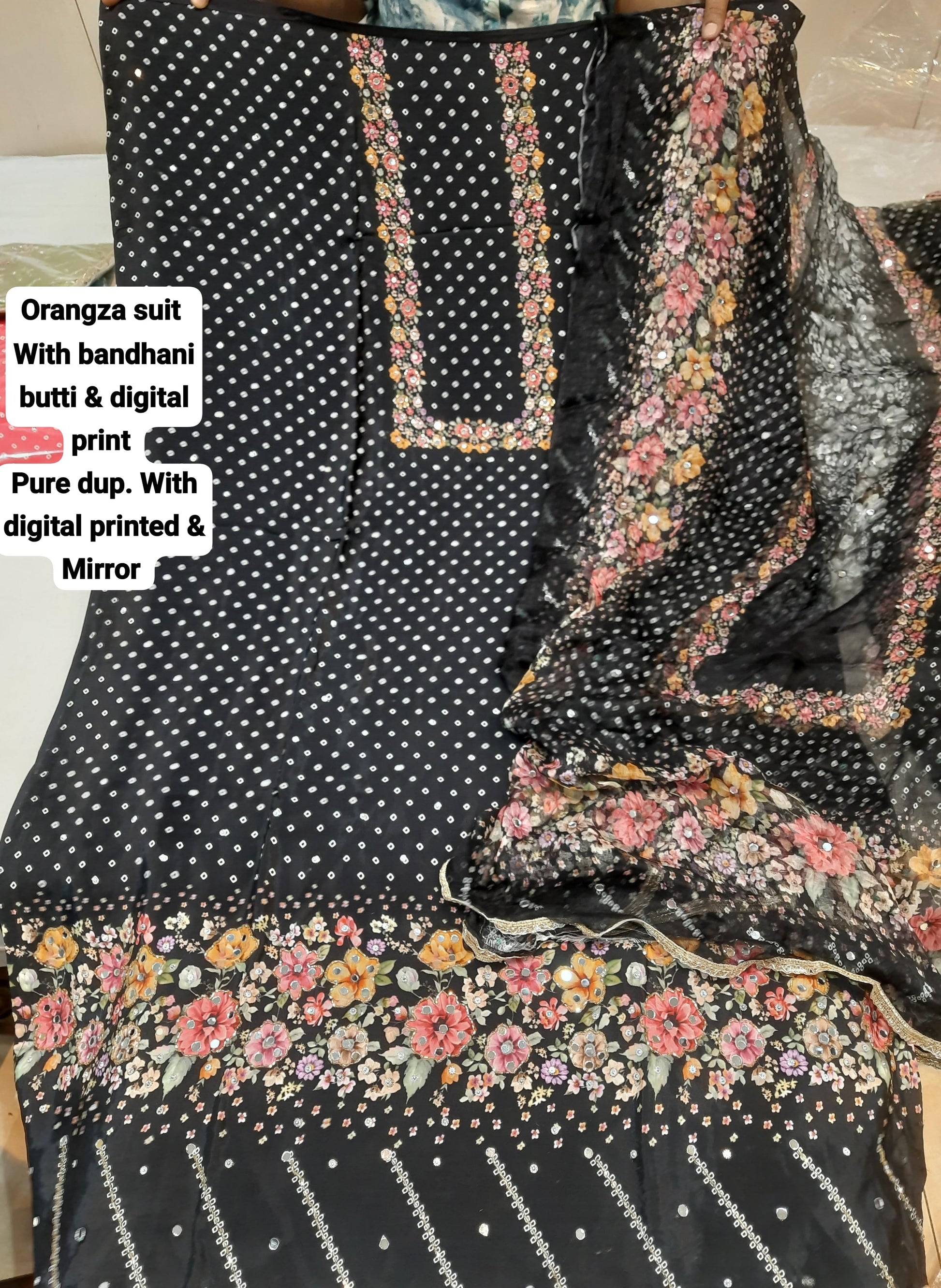 Stunning black organza unstitched Salwar suits dress material (free size)