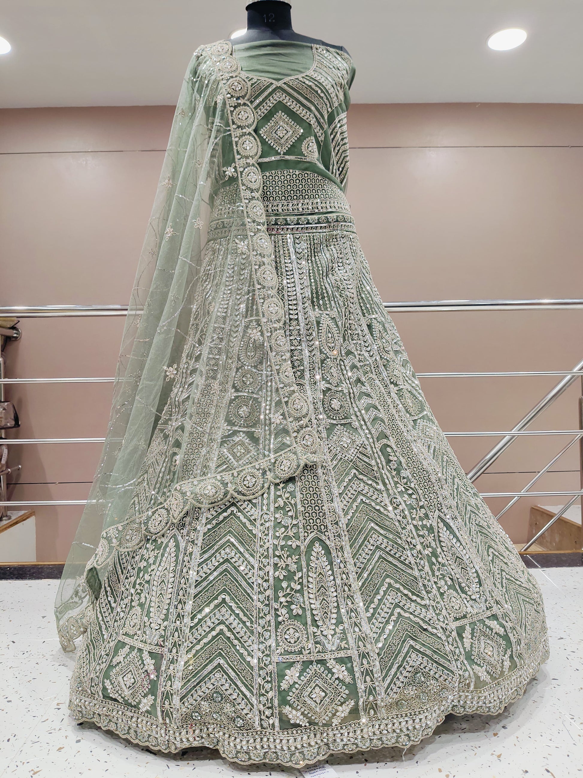 Attractive pista green peacock crop top Lehenga Happy Customer
