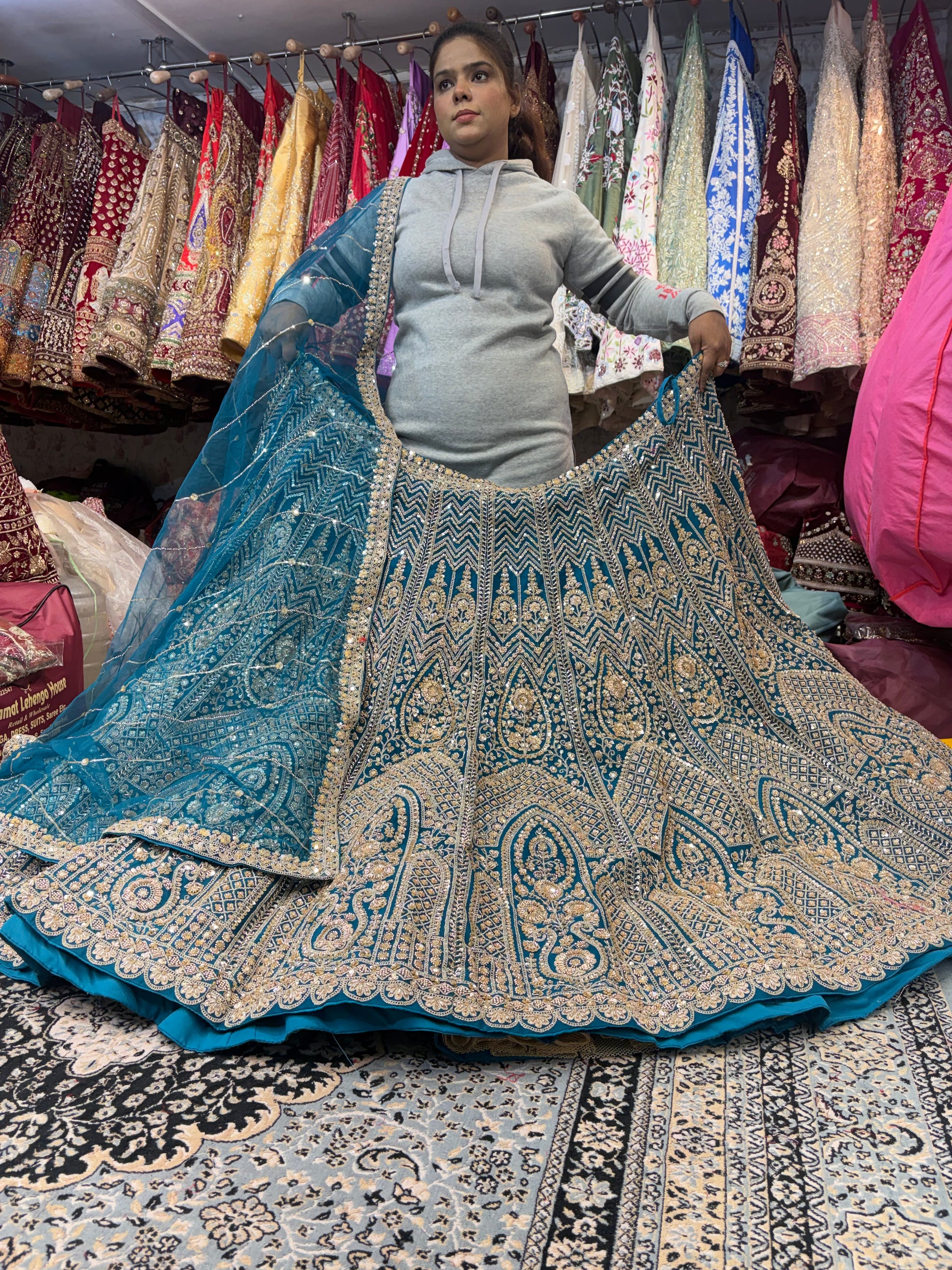 Attractive pista green peacock crop top Lehenga Happy Customer