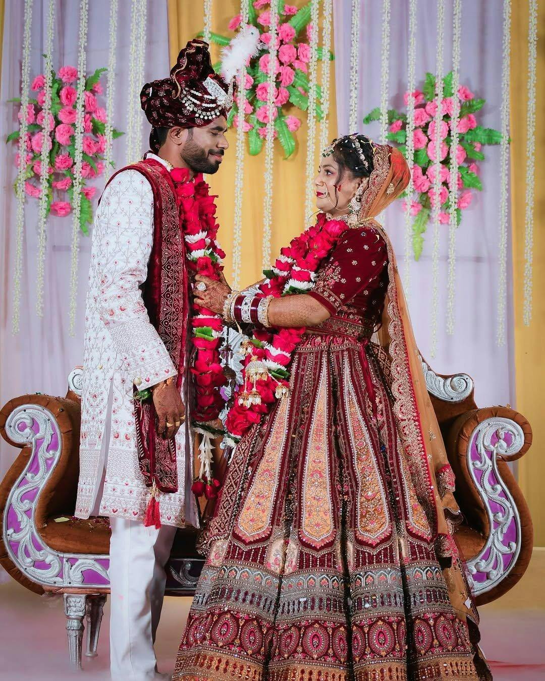 Bridal lehenga ke liye maroon ball gown style lehenga best option nikla. Shade deep aur royal tha, embroidery aur zari ka kaam ekdum fine aur luxurious tha. Lehenga ka flare aur volume photos mein aur bhi impressive lag raha tha. Highly recommend karungi