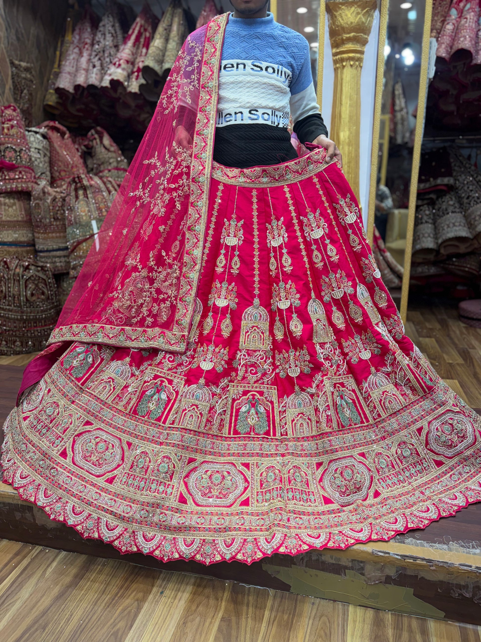 Glamorous Rani pink peacock Double dupatta Silk Bridal Lehenga happy customer