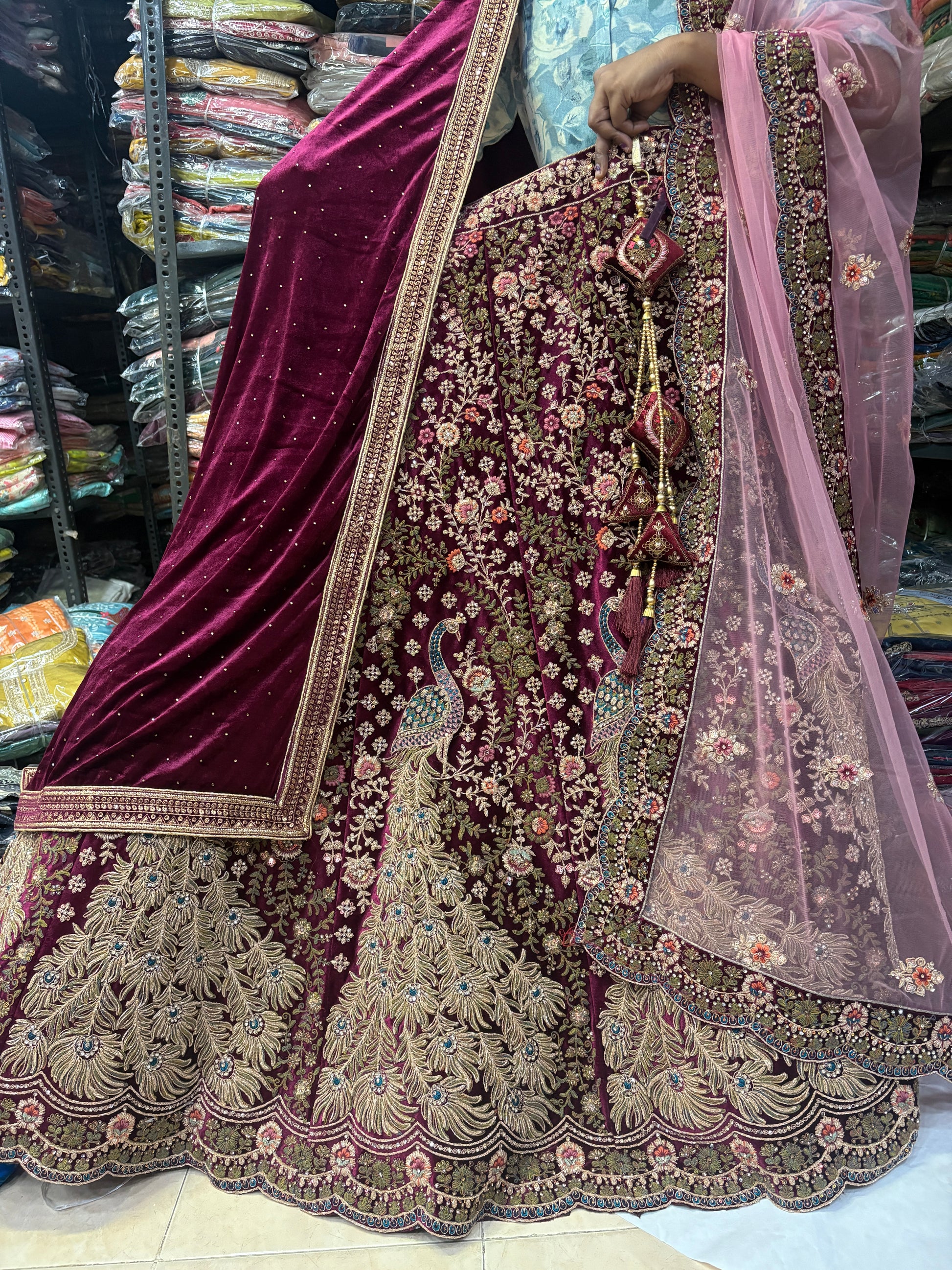 Designer jhumka Maroon bridal lehenga ( happy customer)