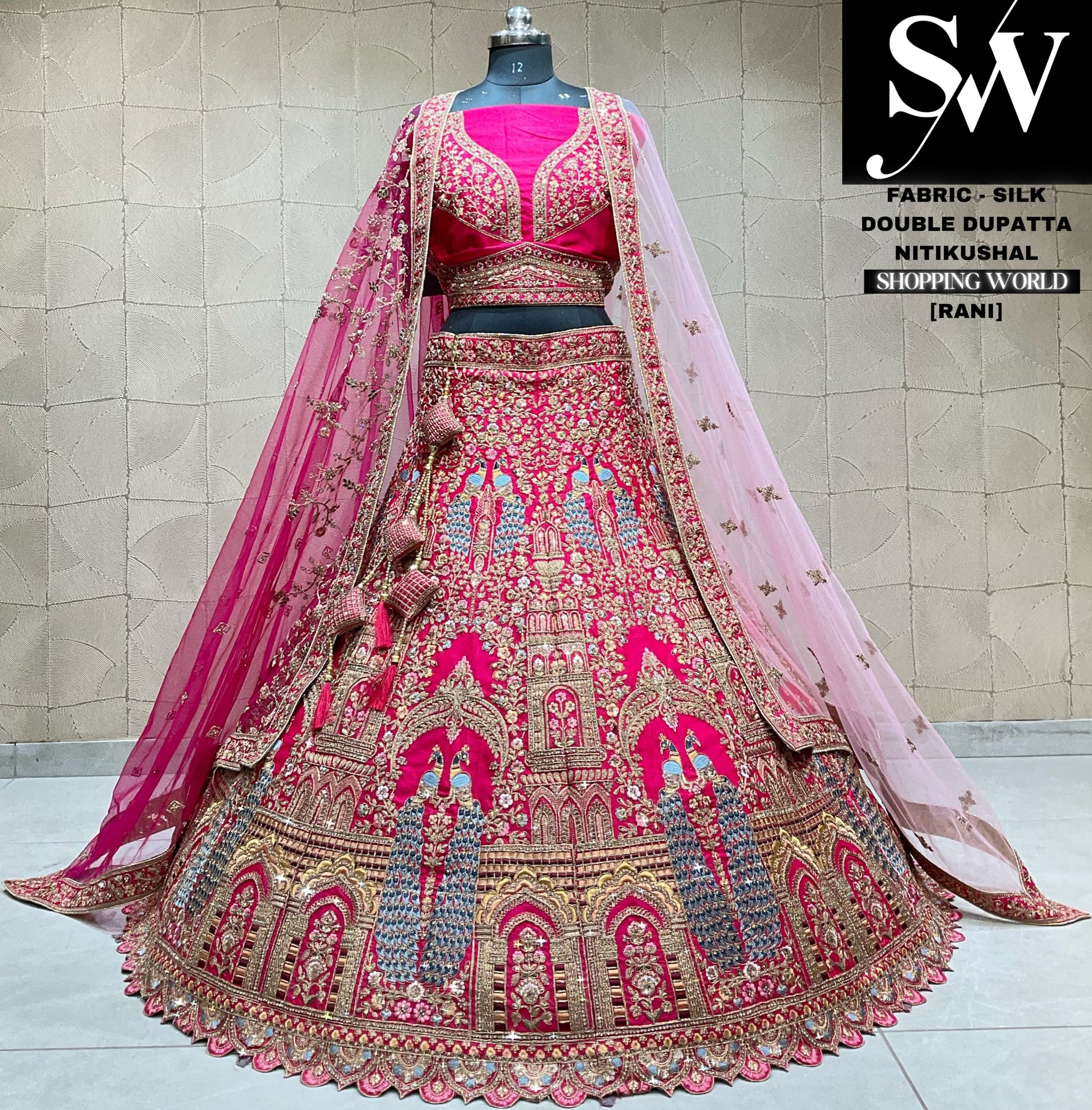 Glamorous Rani pink peacock Double dupatta Silk Bridal Lehenga happy customer