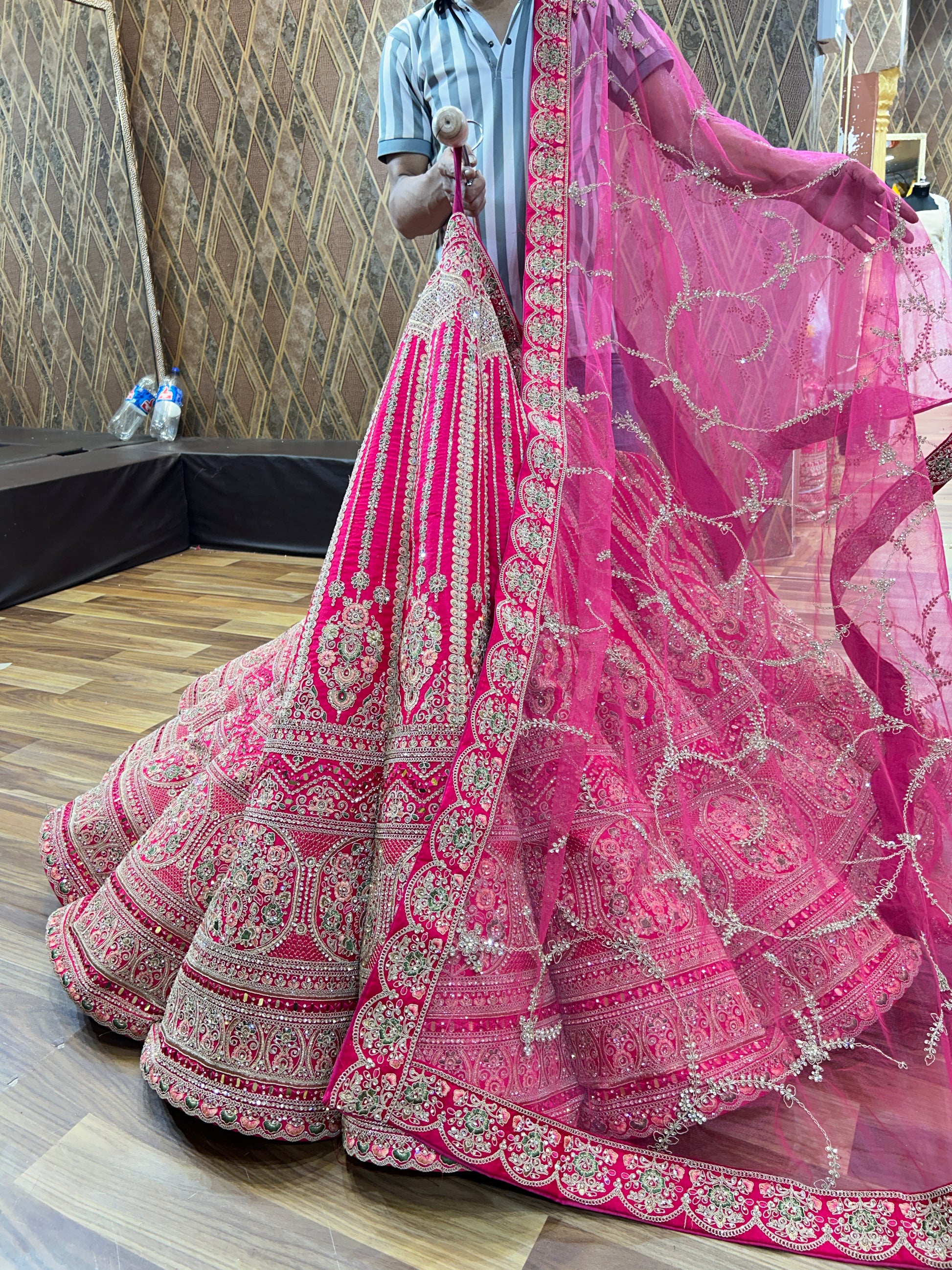 Glamorous Rani pink peacock Double dupatta Silk Bridal Lehenga happy customer