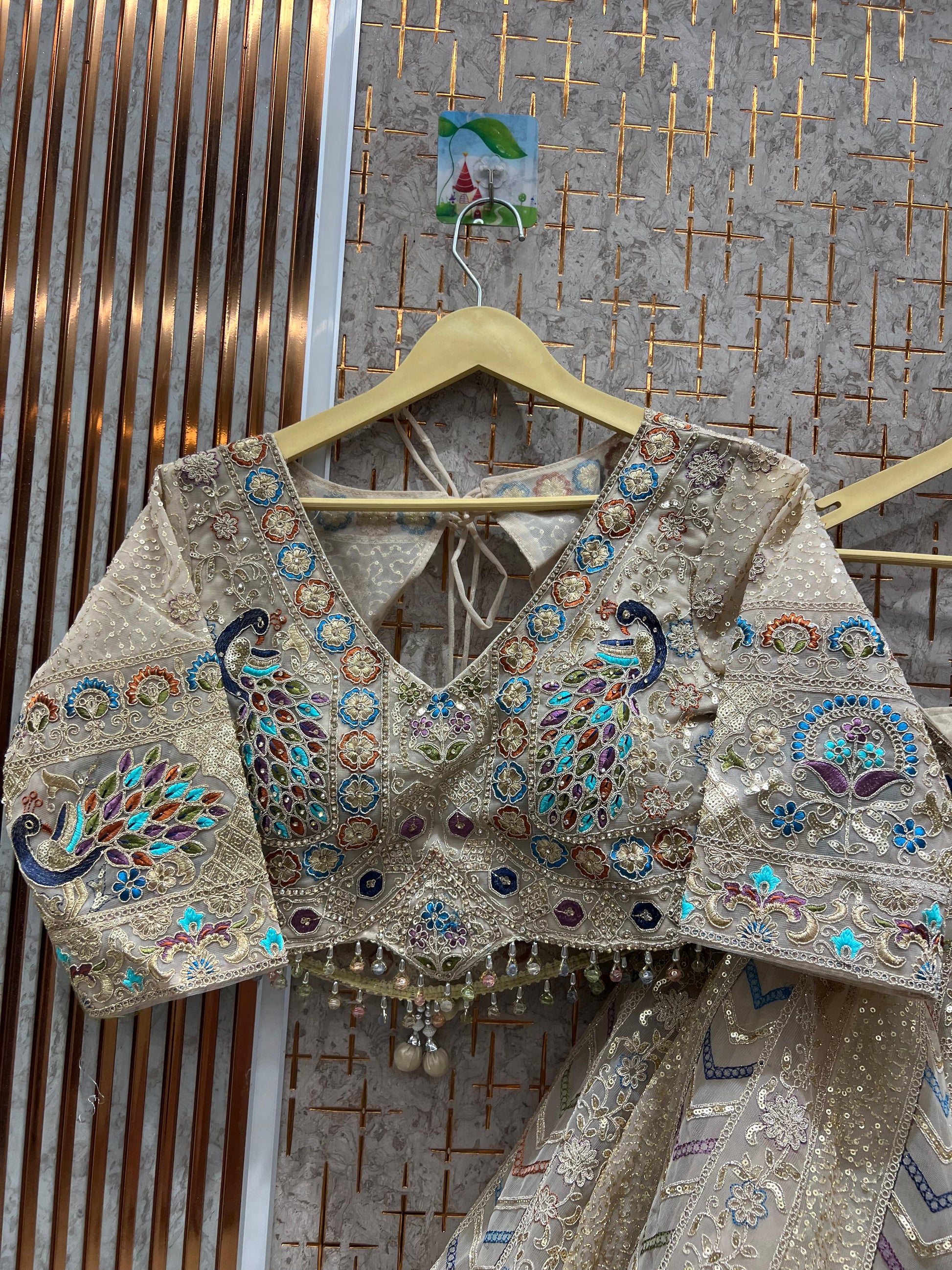 Attractive pista green peacock crop top Lehenga Happy Customer