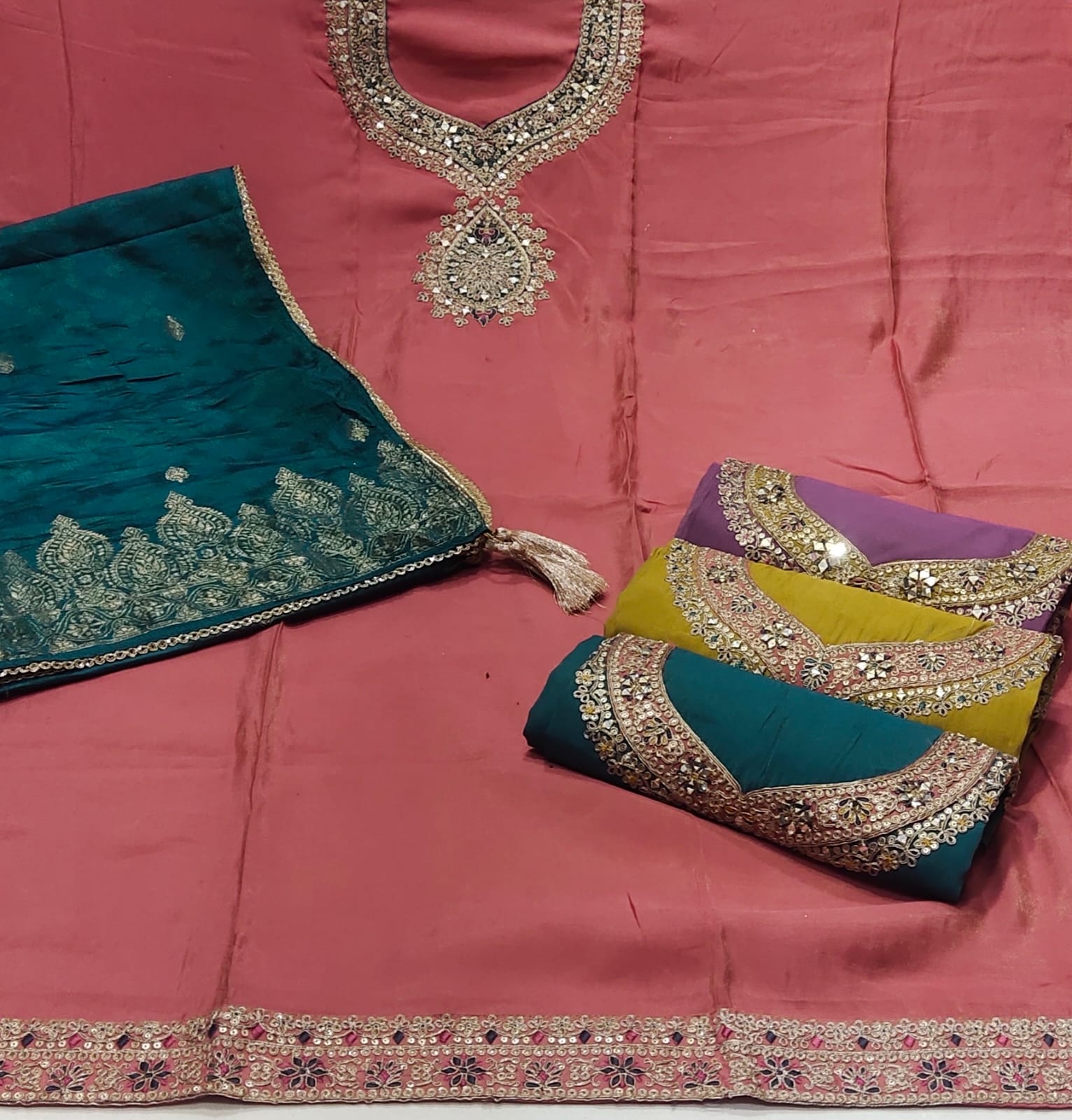Designer pink Unstitched suit ( free size )
