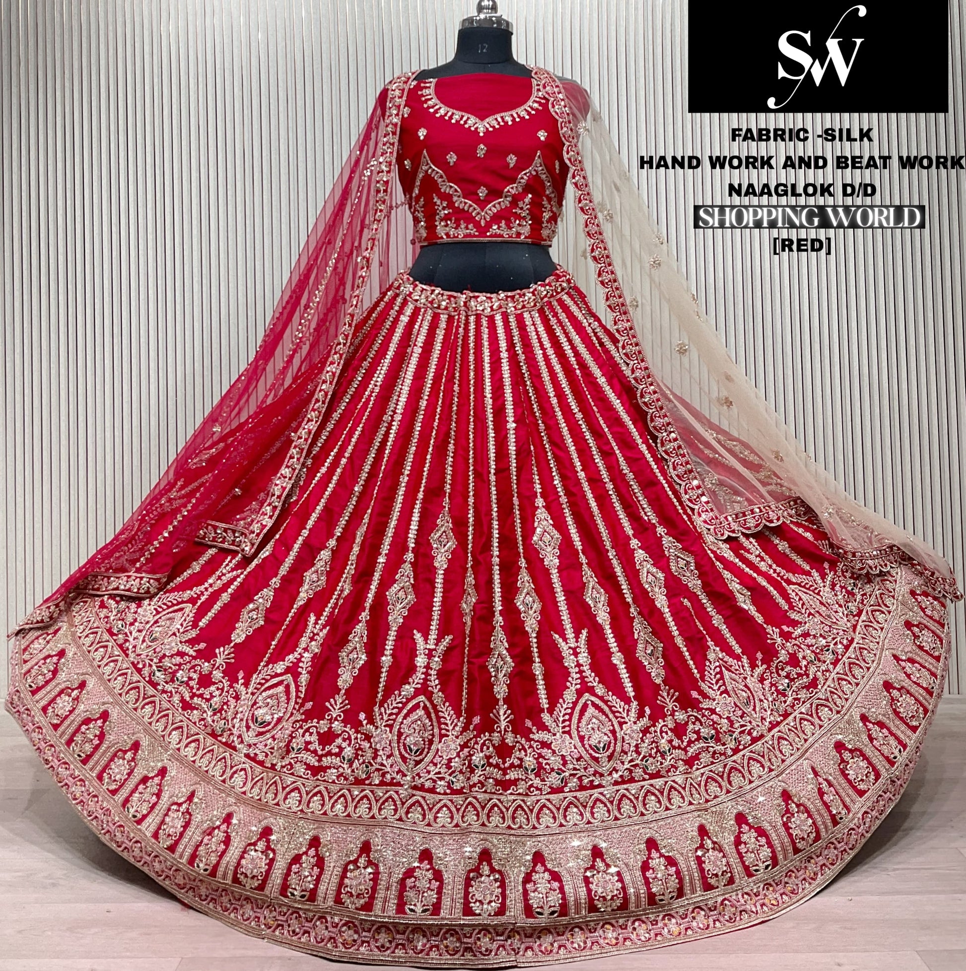 Gorgeous Red Hand & Beat Work Double Duptta Silk Bridal Lehenga